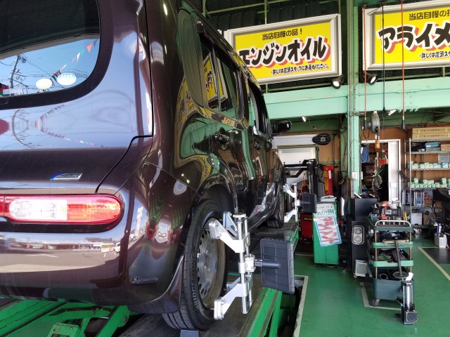 今日はキューブの車検整備です!