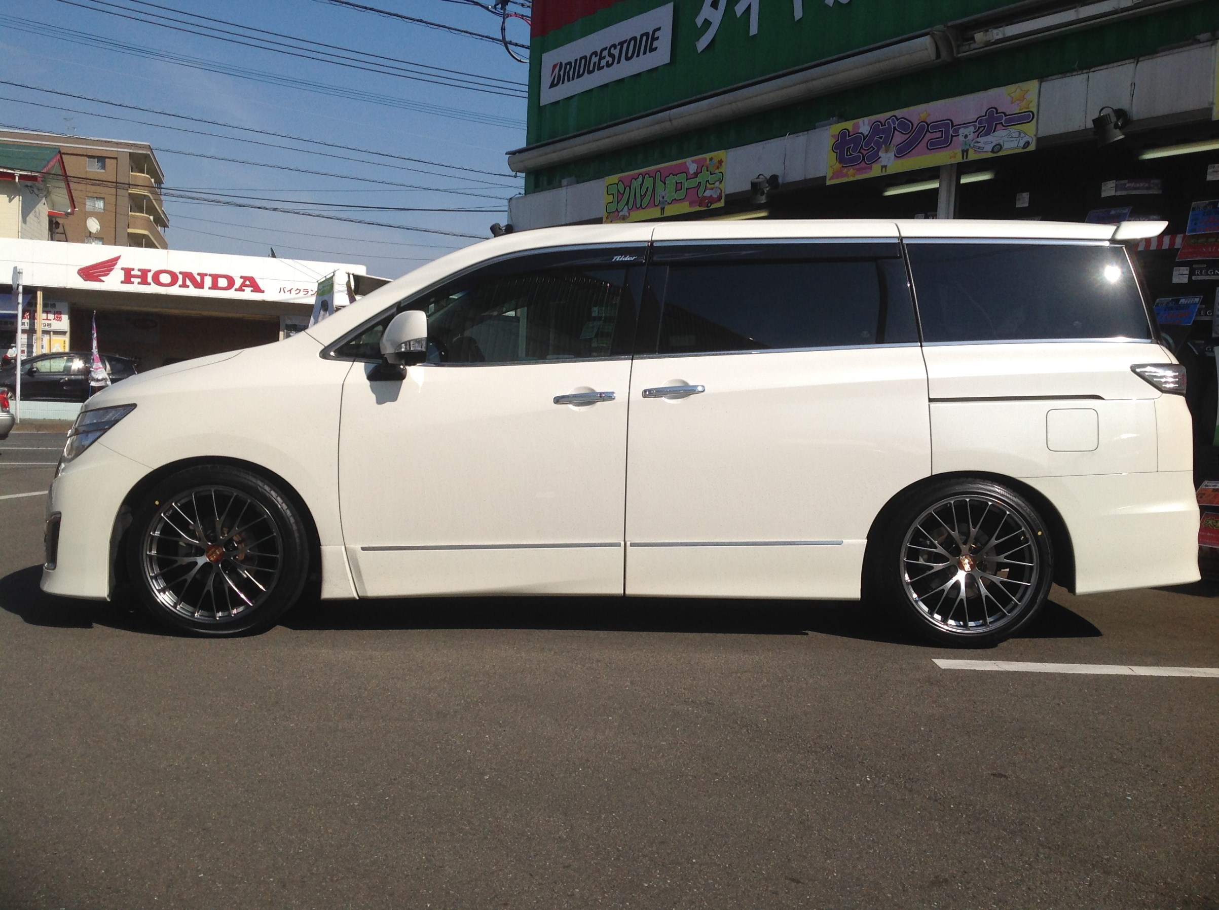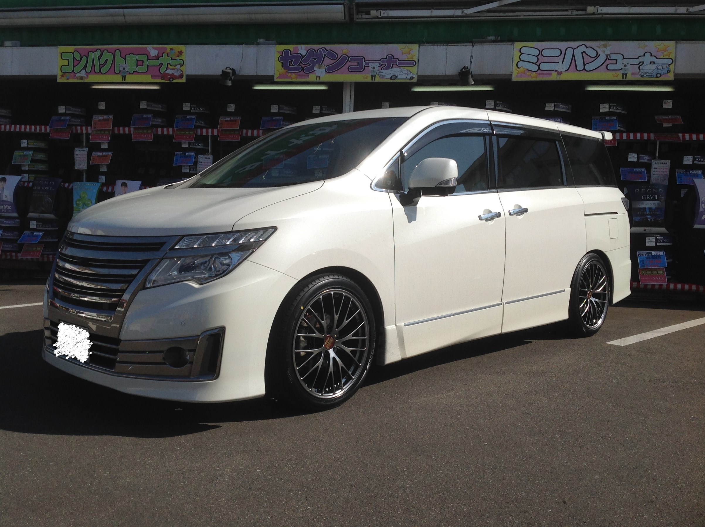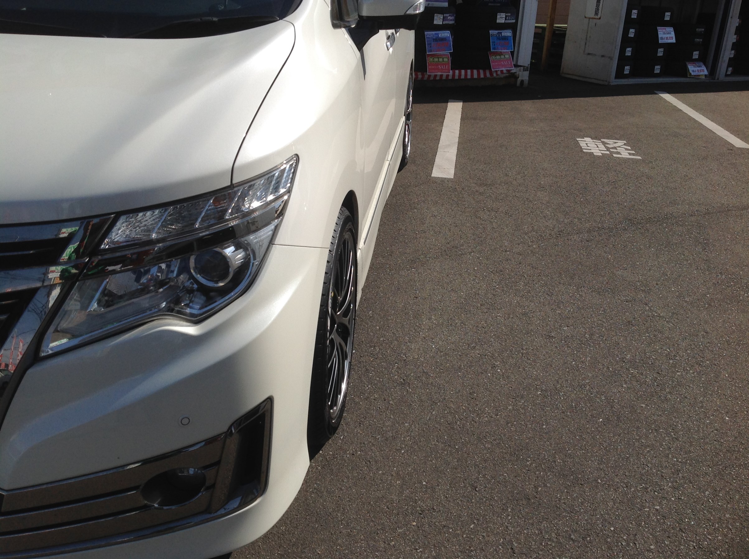 本日の作業は日産エルグランドにタイヤホイールの取付です。