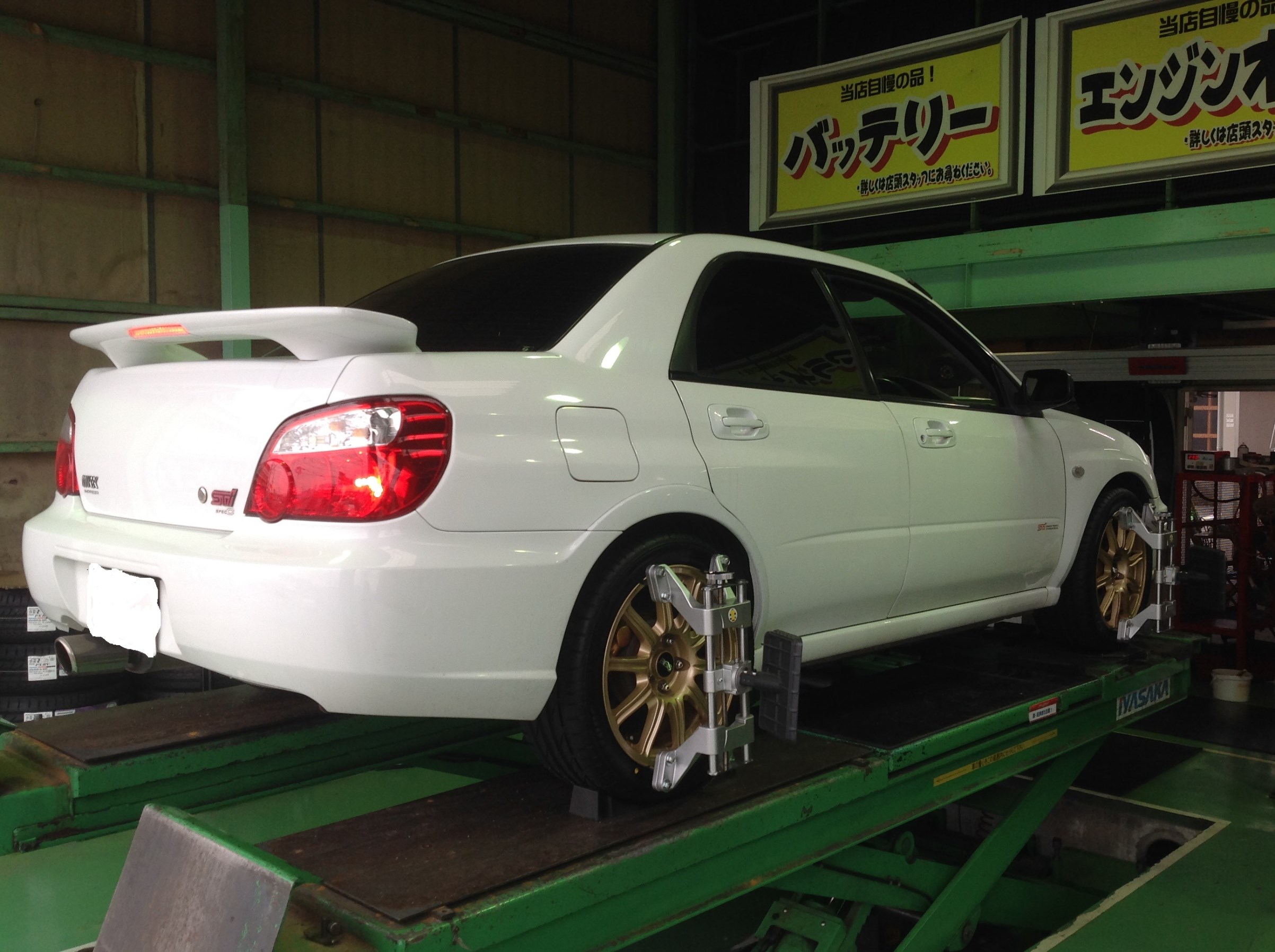 本日の作業はスバル インプレッサのタイヤ交換とアライメント調整です。