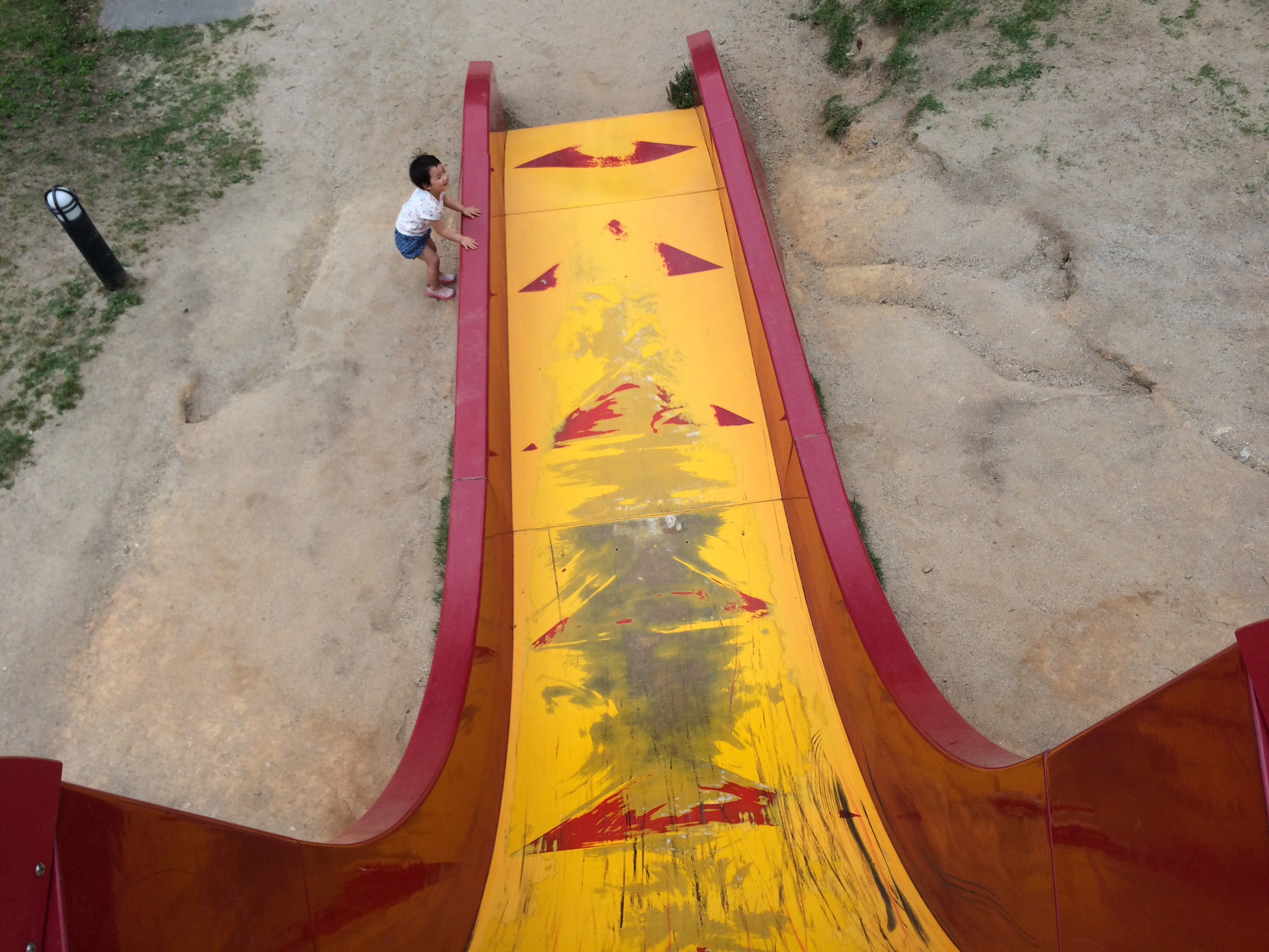 僕も1発目は躊躇して発射地点にある棒をつかんでの滑り(ほぼ落下)でした。。。が、2回目は座った状態からの滑り(ほぼ落下)を敢行!尻が摩擦熱で激アツですが、すごく楽しめました!!
