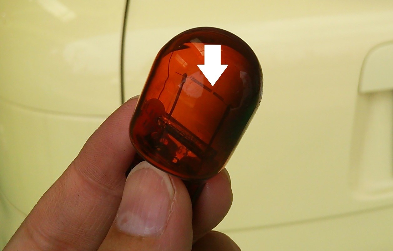 点検させて頂くと、左(助手席側)の後ろのウインカー球が点かない状態に!!