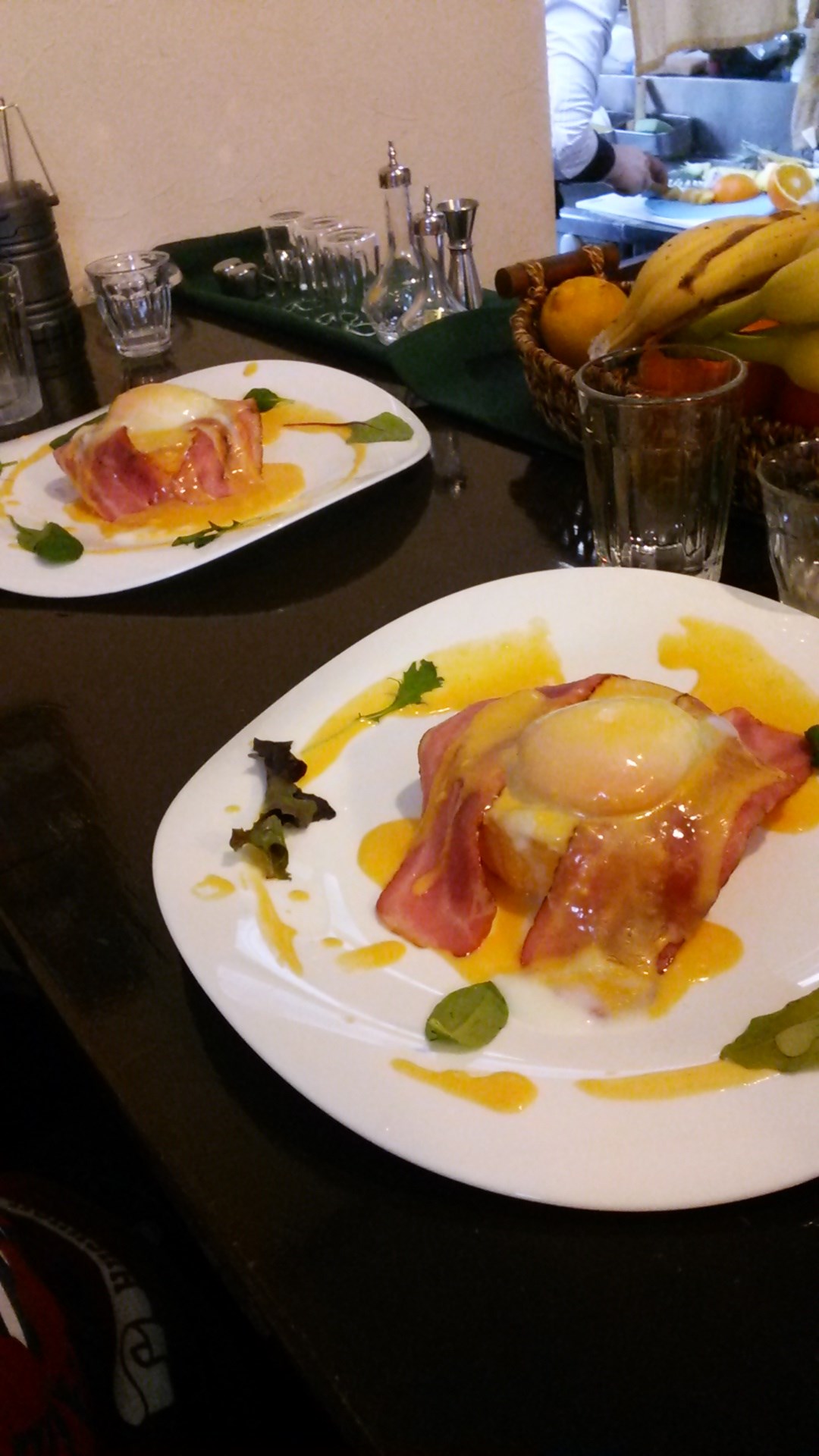ふわふわパンケーキに半熟たまごとこのソースが絶妙なマッチング♪