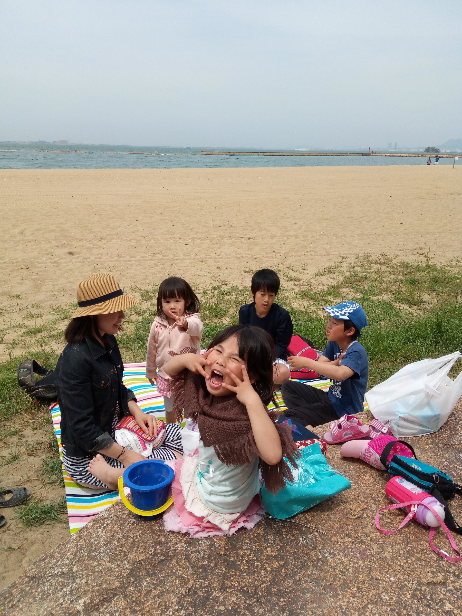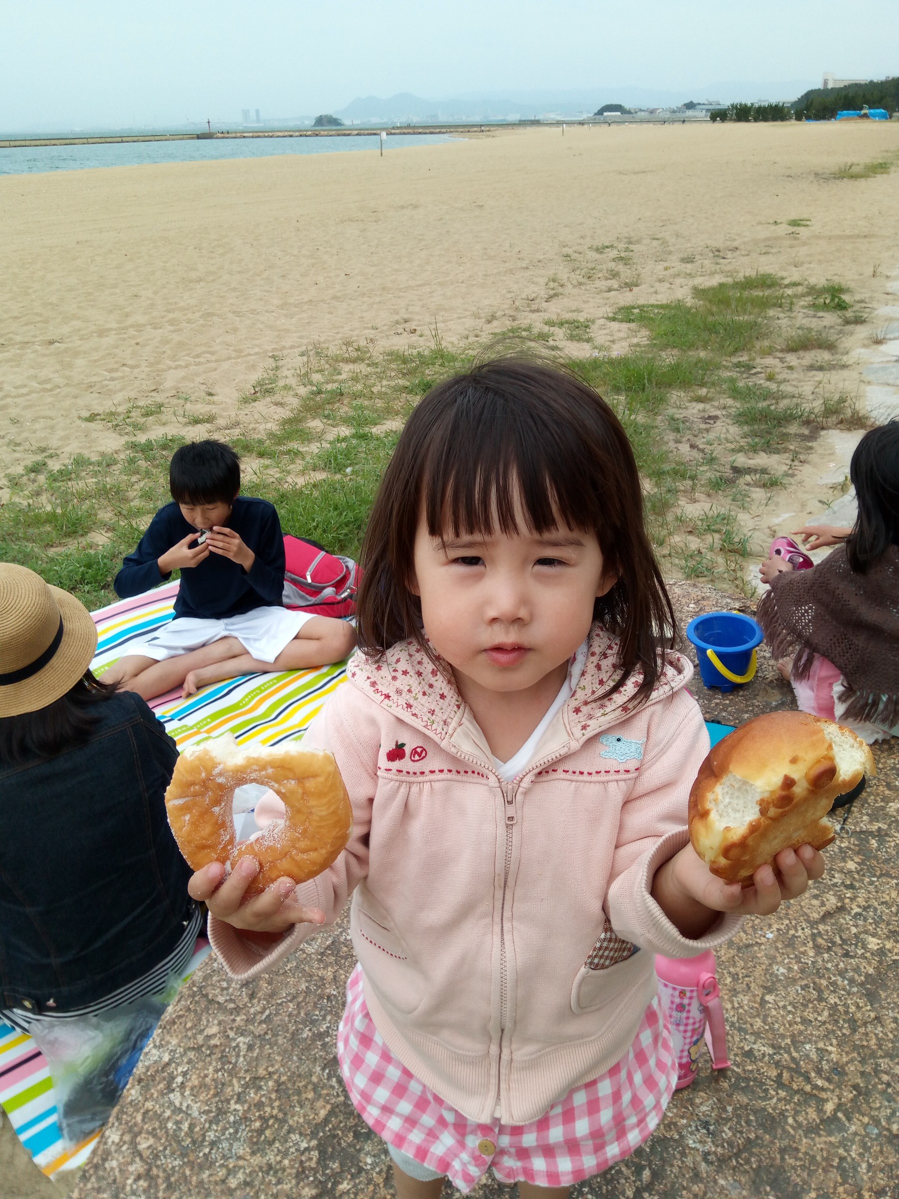 浜辺でお弁当も食べ、みんな喜んでくれてました~(^o^)