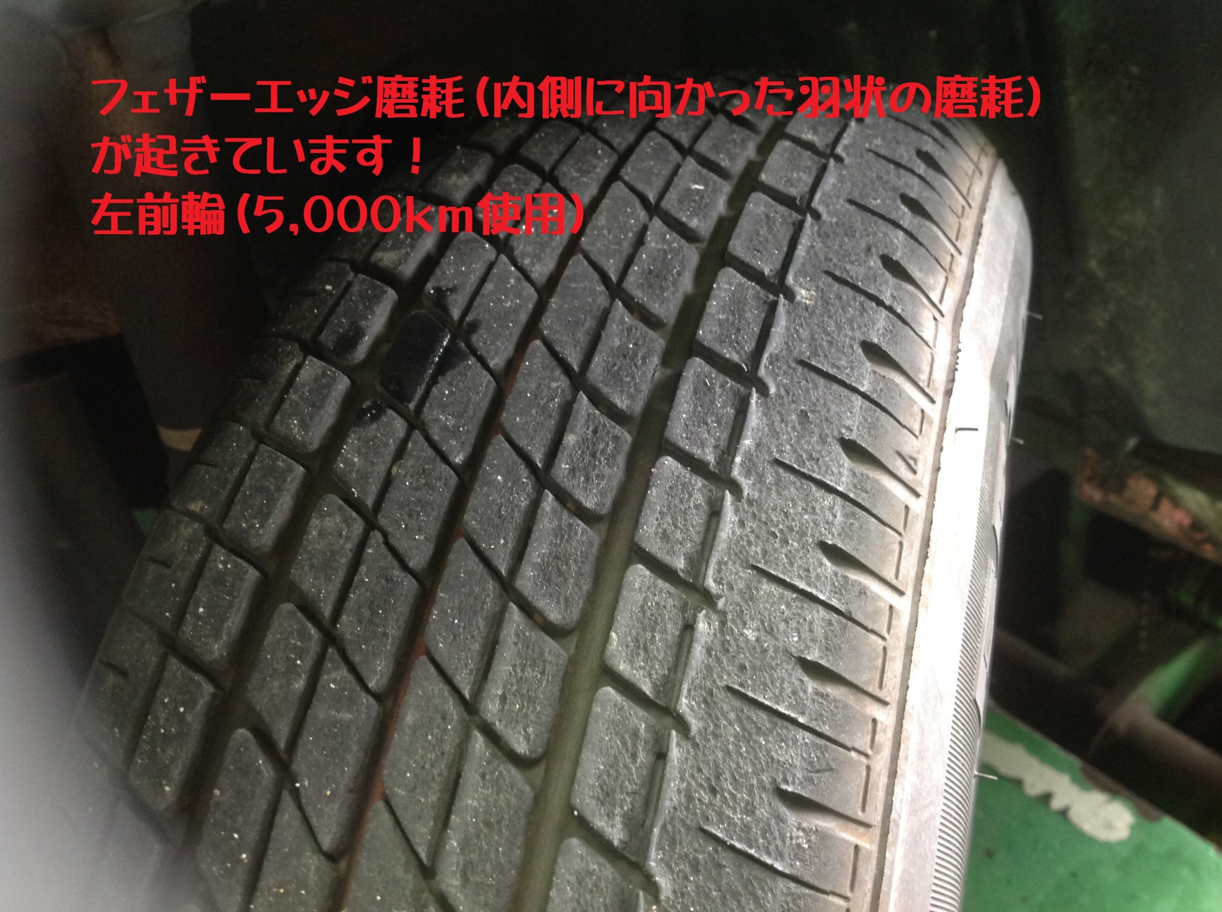 左前のタイヤが異常摩耗しているのを発見(゚Д゚)!