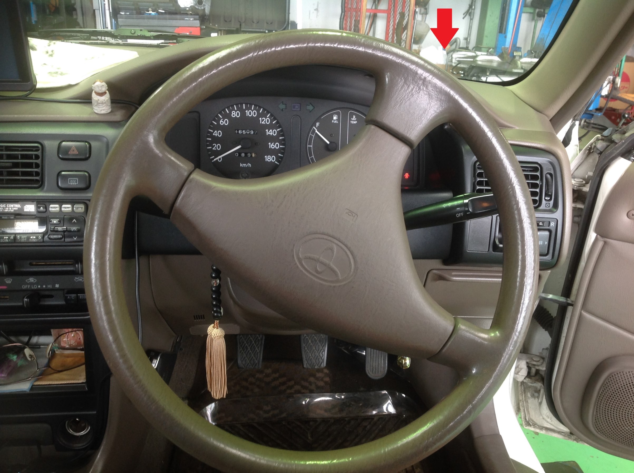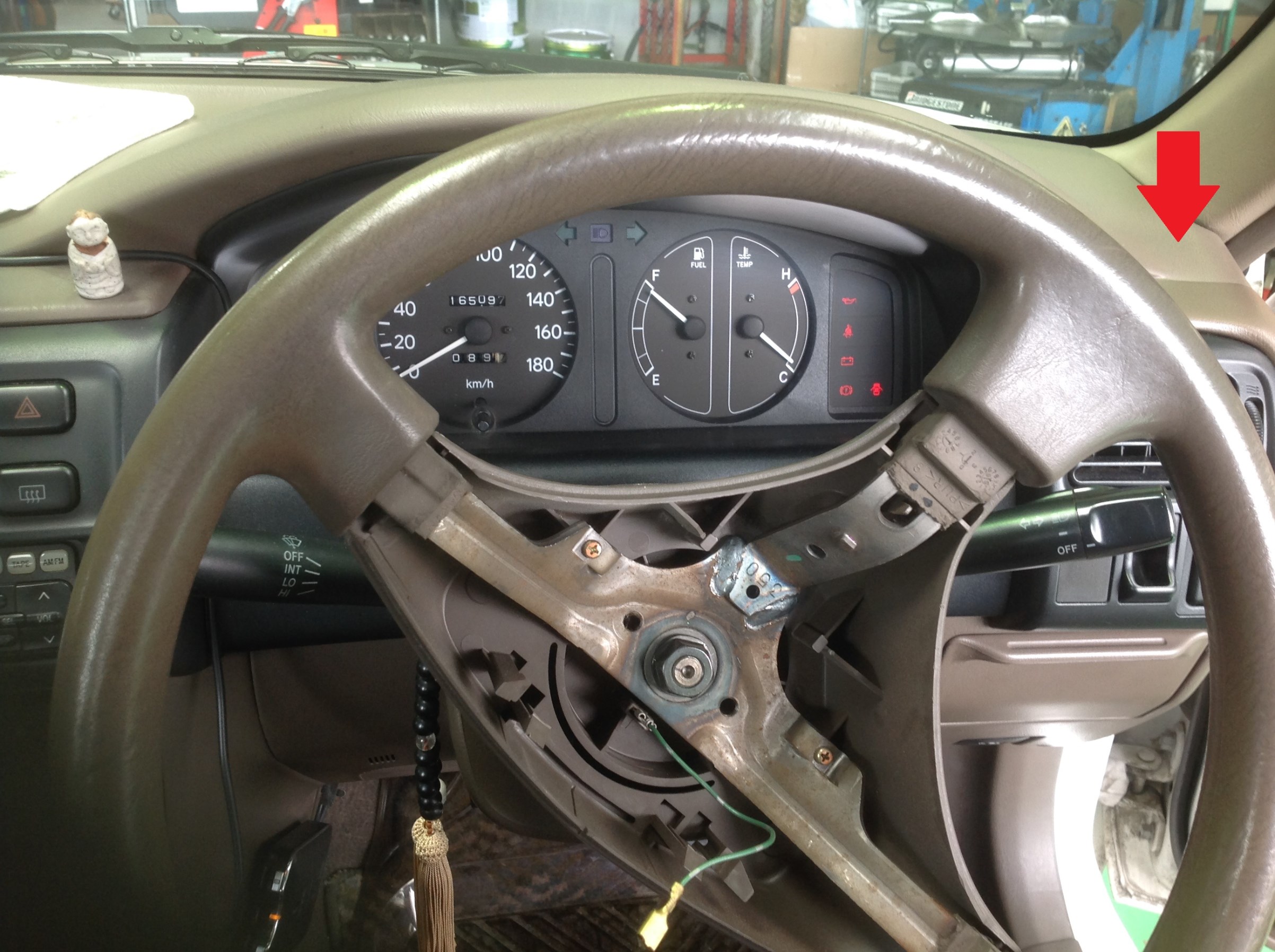 おそらく事故でハンドルセンターが左に約60度ずれてたのをハンドル外して60度ずらして付けたんでしょう( ゚д゚ )