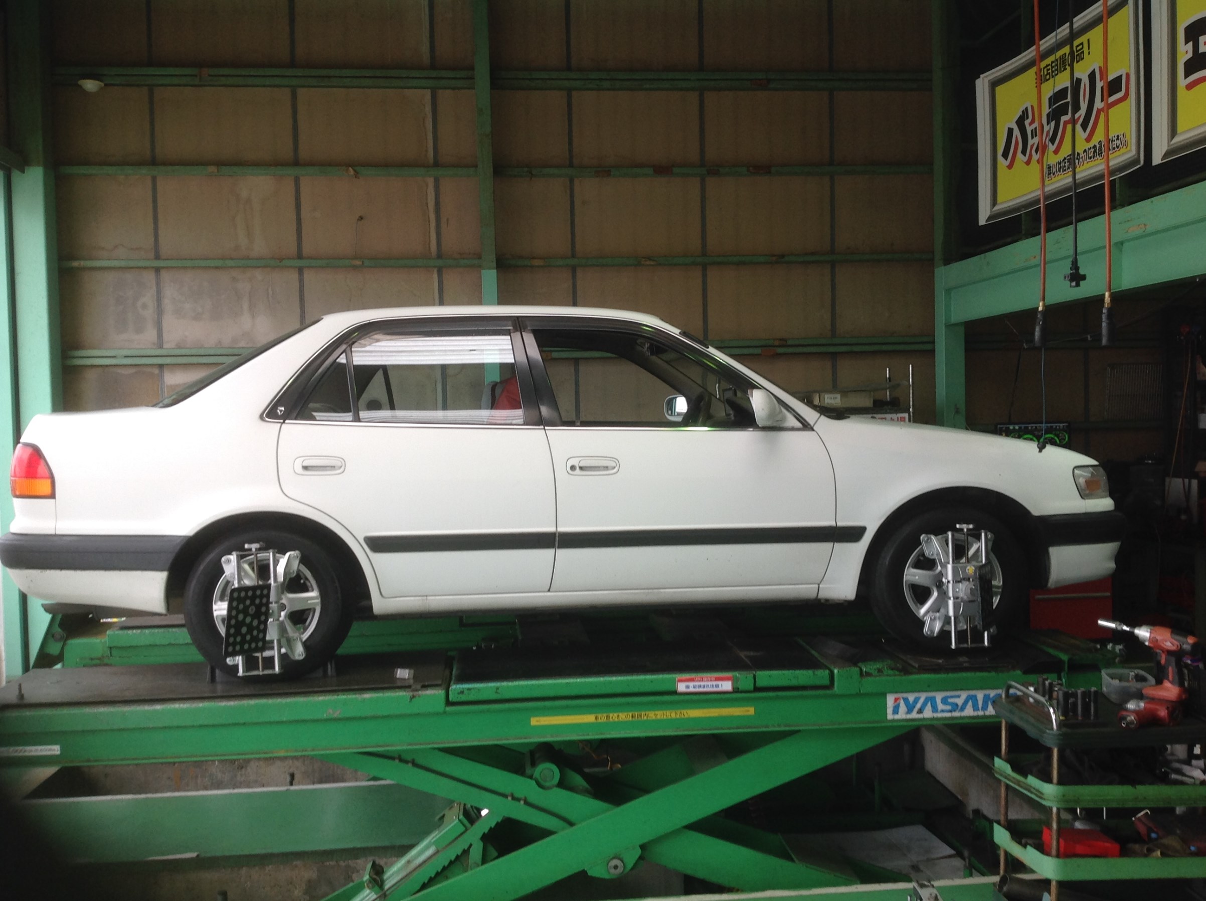 先日、EE111型【カローラ】のお客様のオイル交換中、タイヤの空気圧を点検していると、