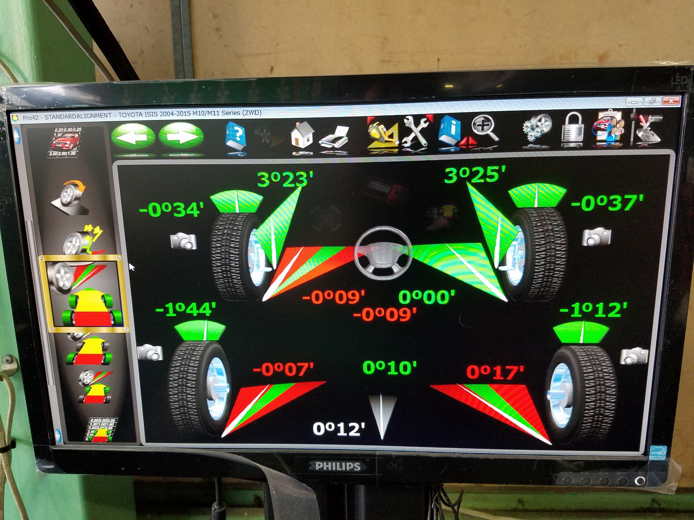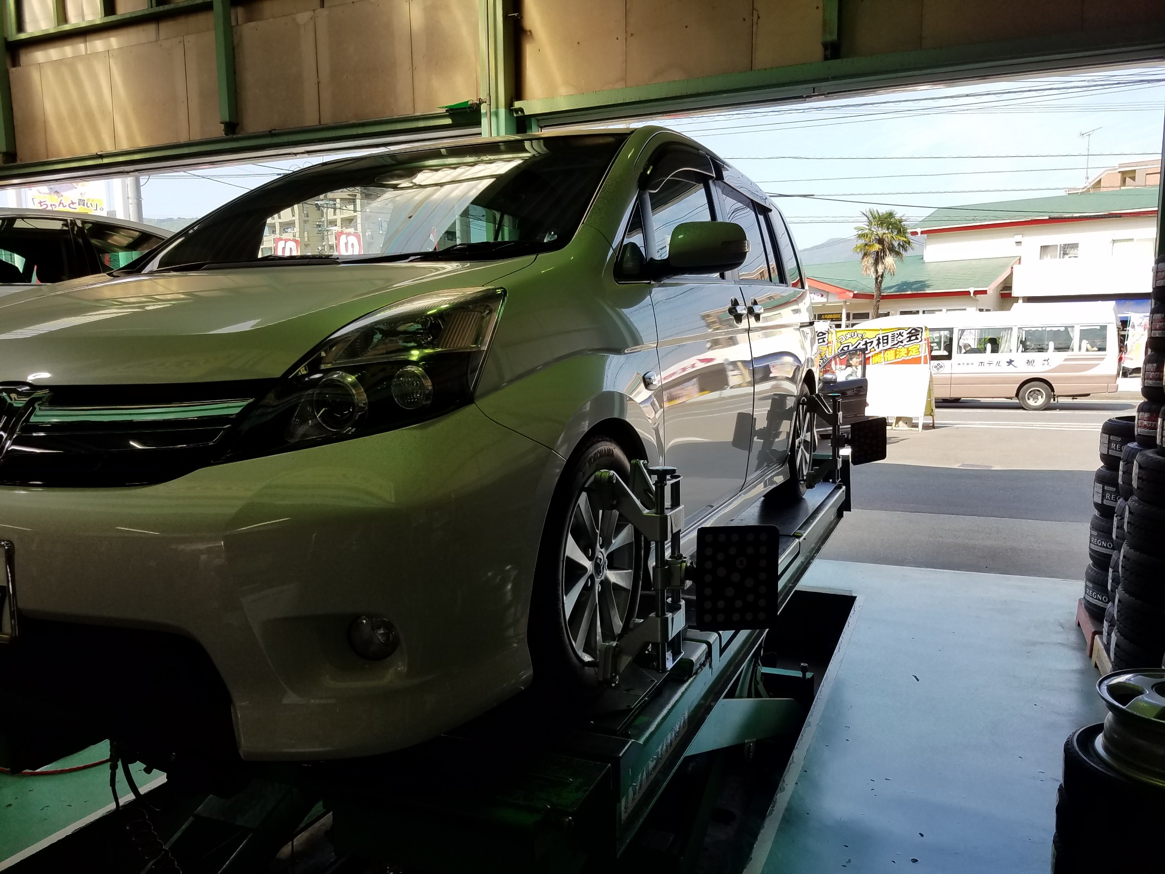 本日の作業紹介はトヨタ アイシスのアライメント調整です。