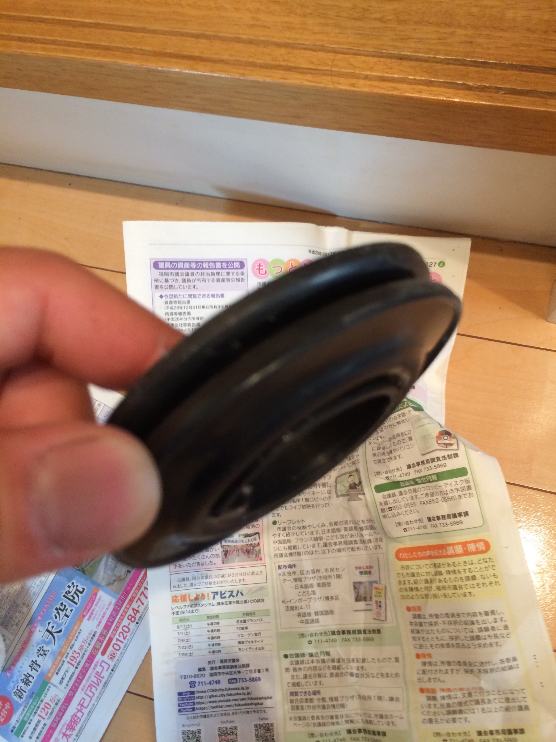 で、腰を痛めないように、やたら重たいタンクを持ち上げ、古いパッキンを外します。見ての通りゴムが経年劣化で潰れてしまってました・・・