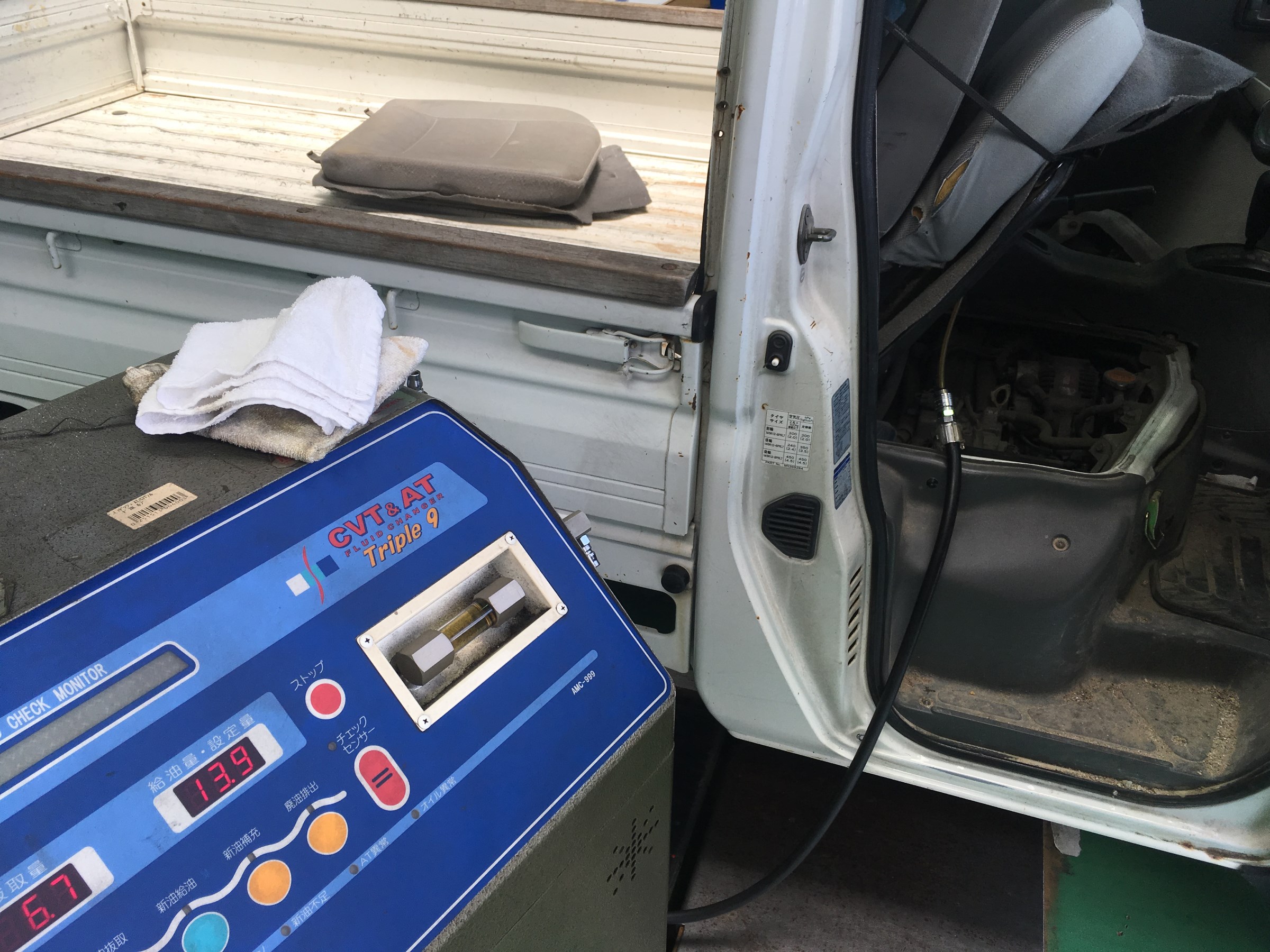 本日は、車検でお預かりしている、ミツビシミニキャブの、ATFオイル交換をしました~~~(^O^)/
