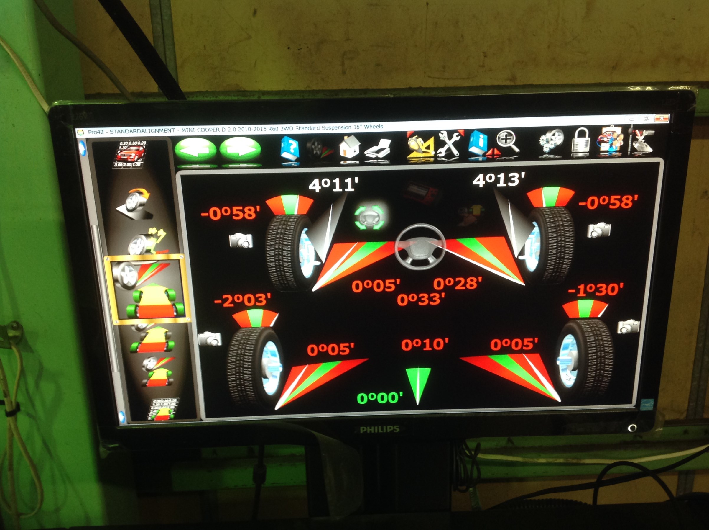 タイヤ交換後、当店自慢の3Dアライメントテスターで測定すると、、、