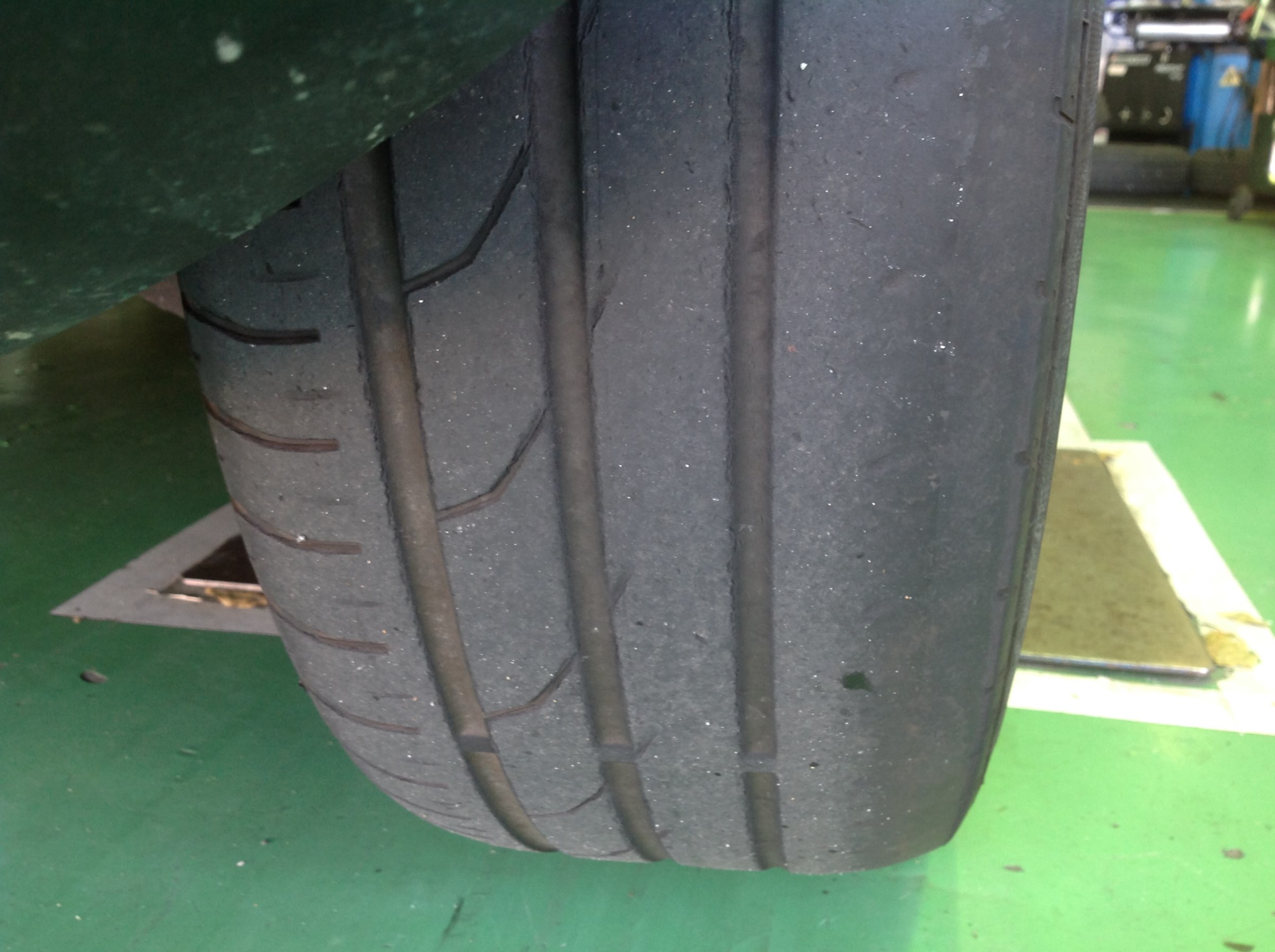 まずタイヤを見ると異常なまでの偏摩耗(タイヤの外側がひどくすり減ってました・・・)。。。