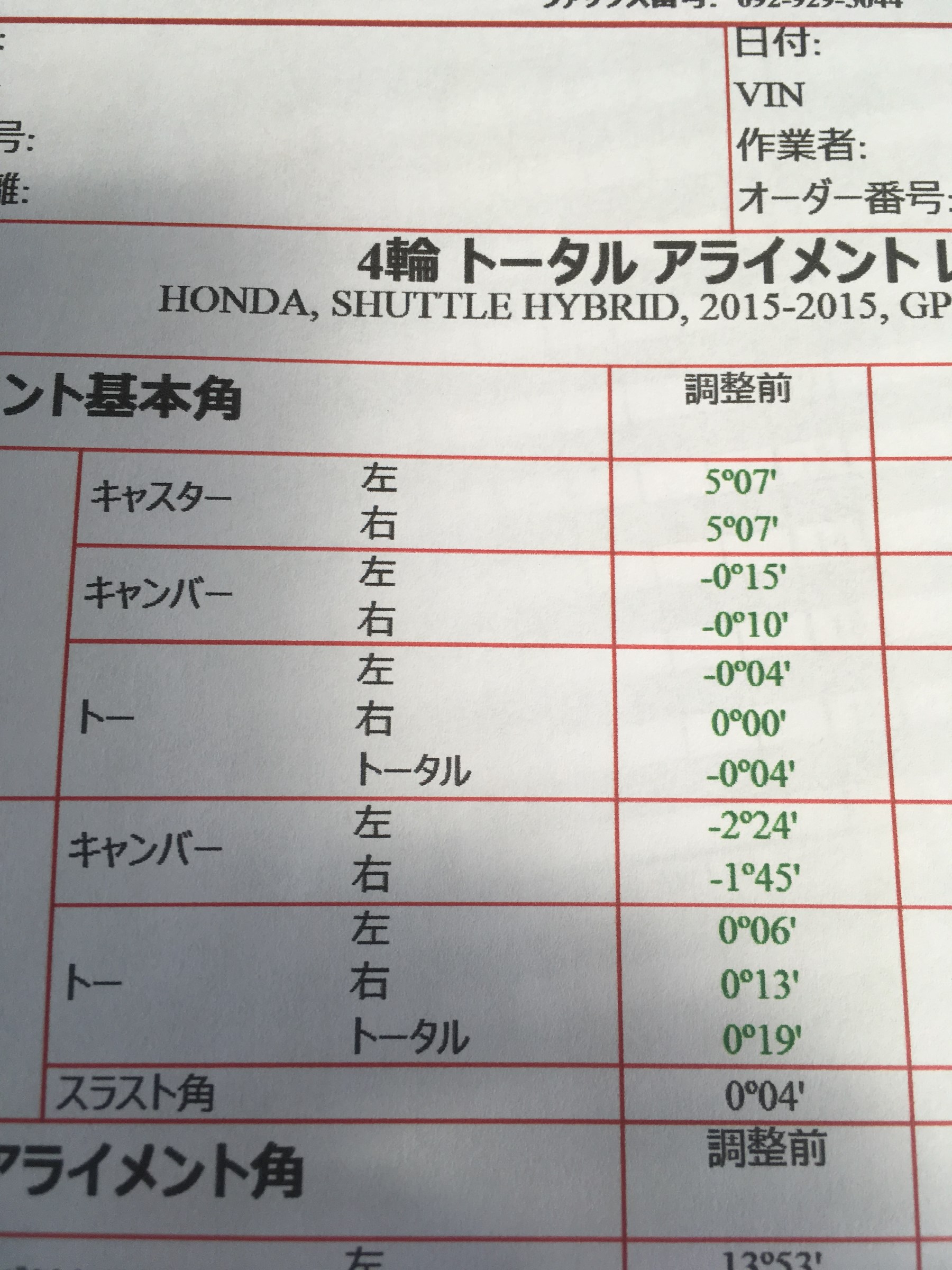 ホンダ シャトルHV タイヤホイール取り付け、アライメント調整