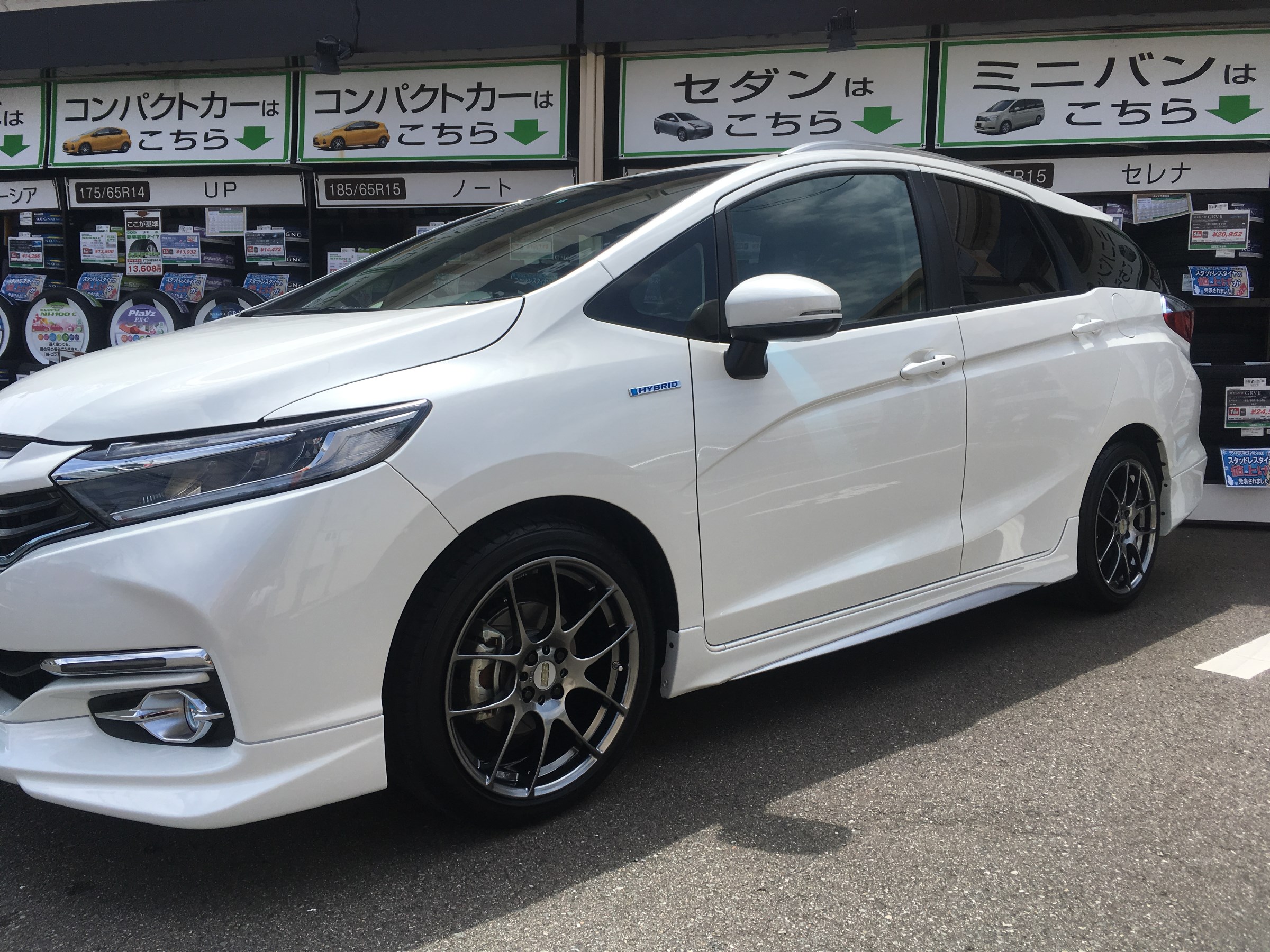 今回はホンダシャトルHVに、BBS17インチ、タイヤはプレイズPXの取り付けと、アライメント調整