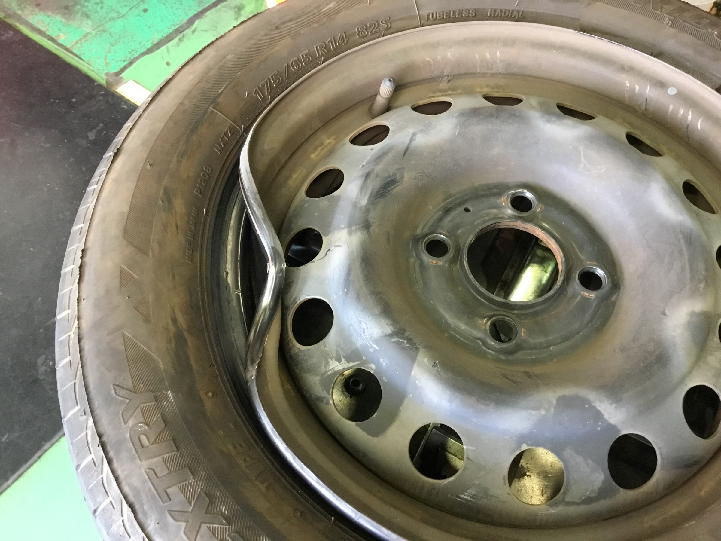 鉄のホイールがグニャグニャにっ!!