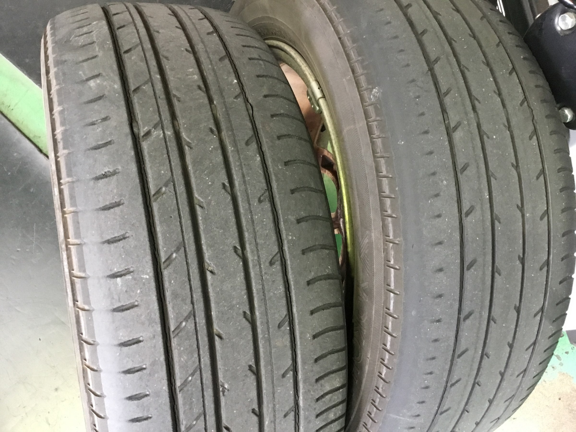 かなりの偏摩耗(タイヤの内側の異常摩耗)が出ていました( ゚д゚ )!