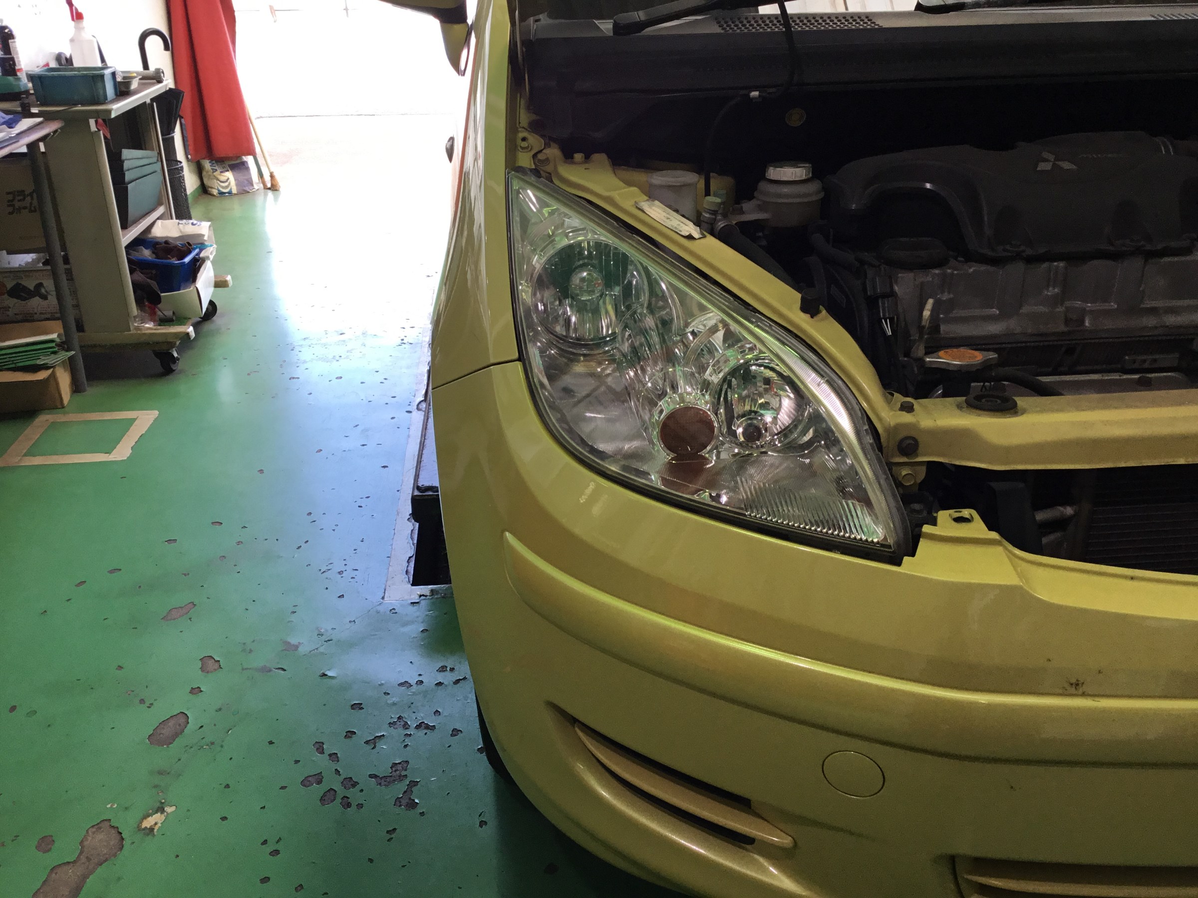 今回は純正HIDが入っている為、ライト磨きをしました。