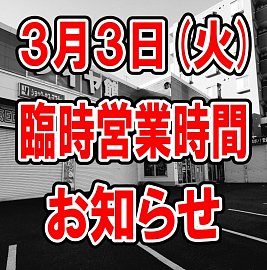 ☆ 3月3日 × 時短営業のお知らせ ☆