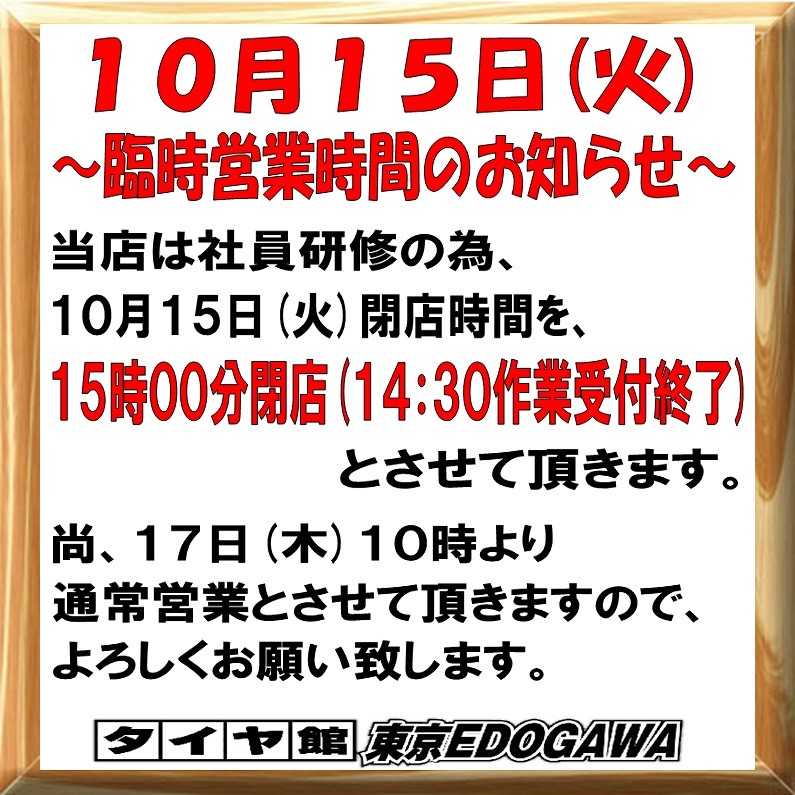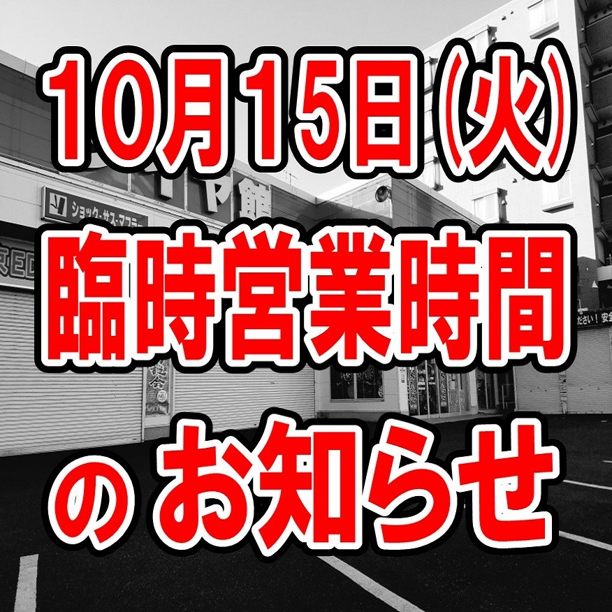 ~ 10月15日(火) 臨時営業時間のお知らせ ~