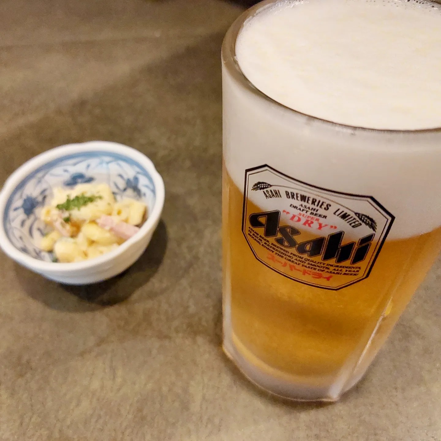 先ずはお通しのマカロニサラダを頂き…