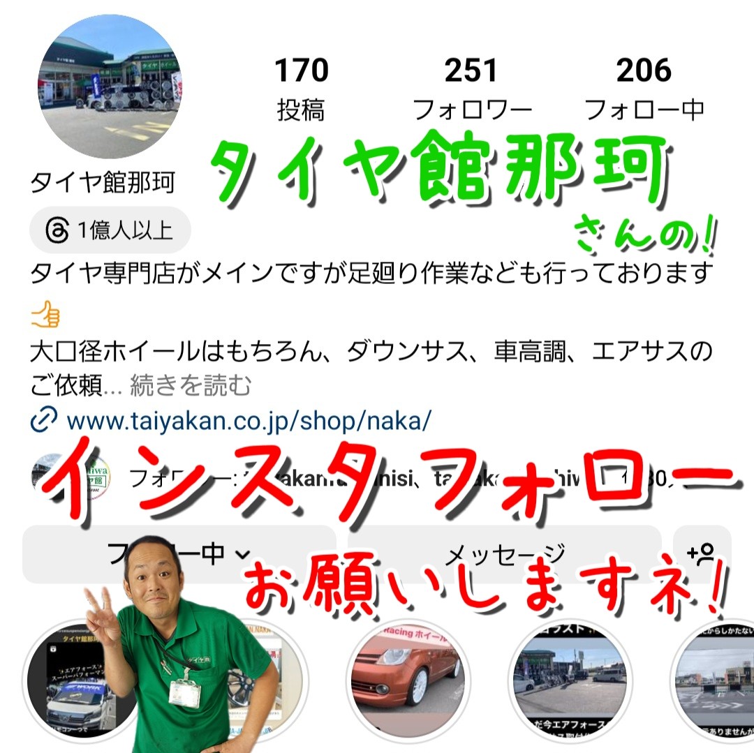 ⇒⇒⇒ タイヤ館那珂さんのインスタはコチラ♪♪ ( フォローシテネ☆ )