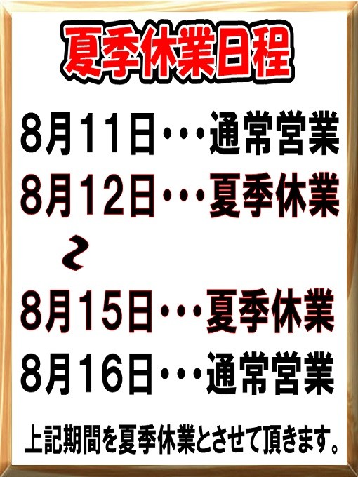 『 夏季休業 』 とさせて頂きます!