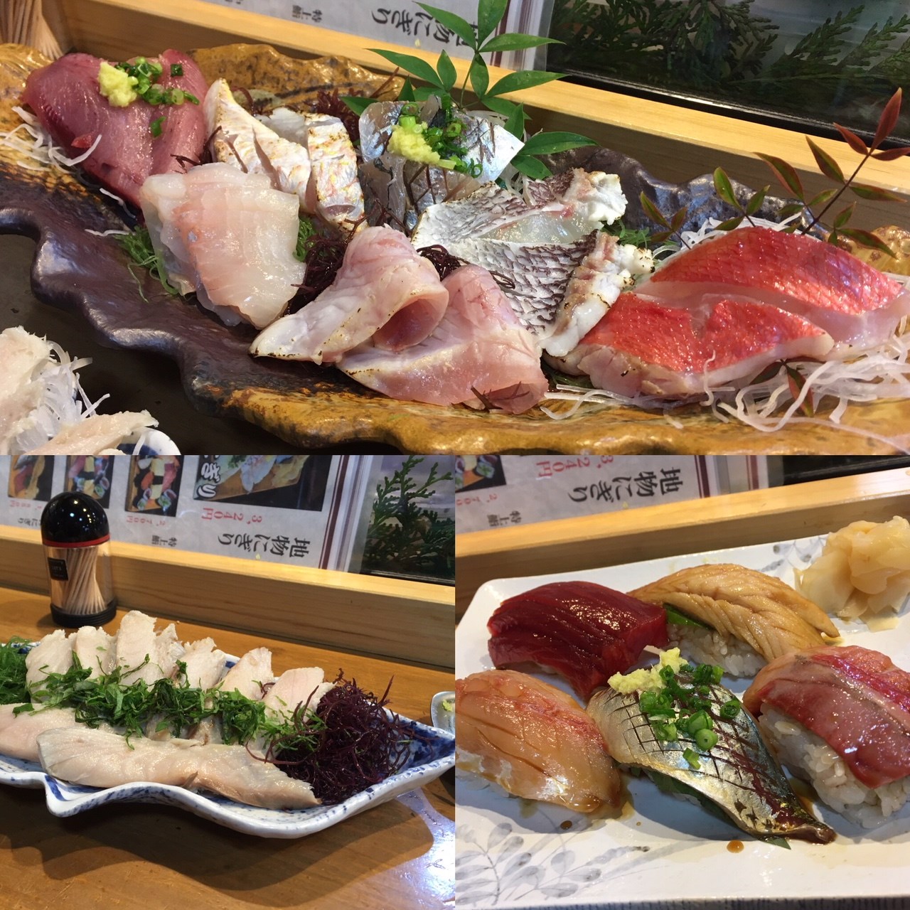元日から美味しい海の幸を♪刺身に握りをお腹いっぱい頂きました~。