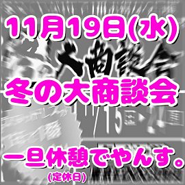 おはようございます!男・山田です!! 本日は水曜日!!(*ノ><)スイヨー 、、、店舗は定休日となります。。 【 冬の大商談会2025 】も 一旦休憩でやんす。。( ̄^ ̄゜)グスン ☆★☆ 冬の大商談会 [ 2025 ] ☆★☆ セール期間 : 11月15日(土) ~ 24日(祝・月)※ お問合わせ:03-5678-5296 ※11月19日(水)は定休...