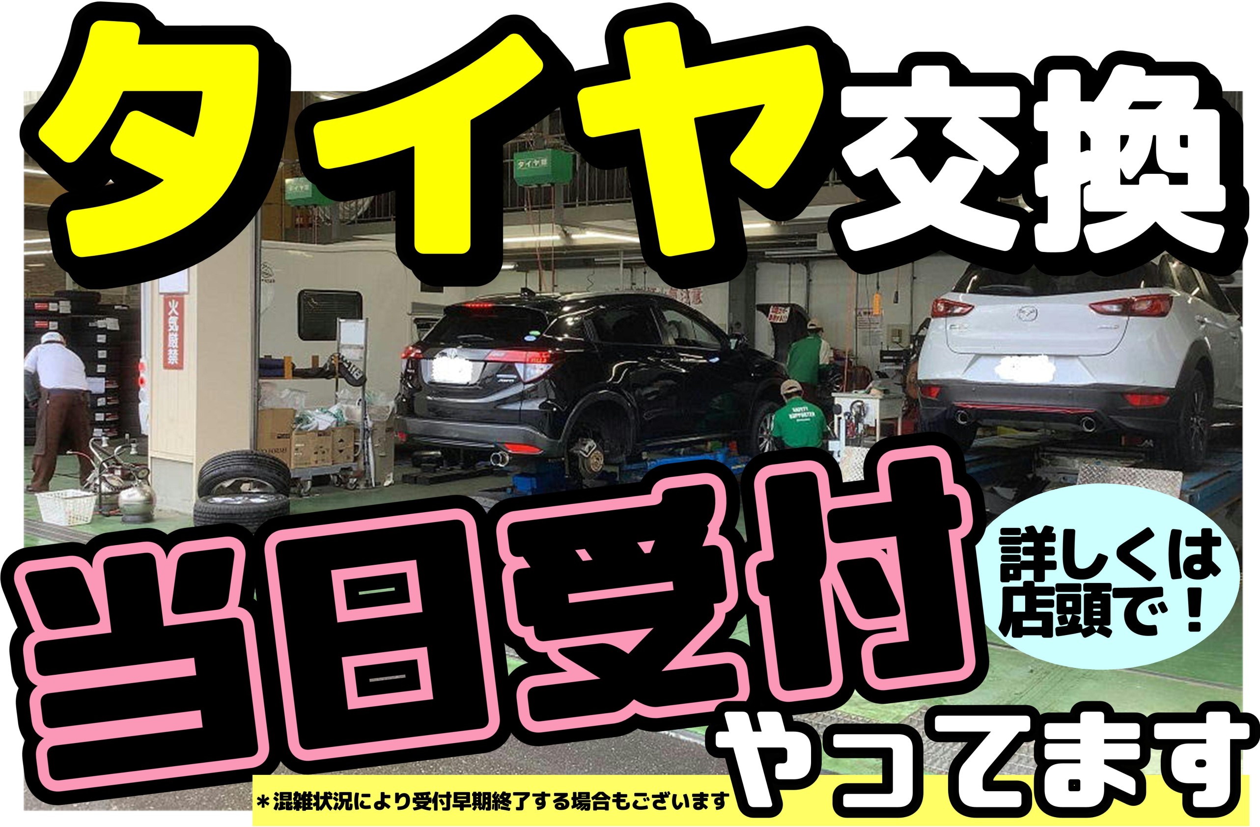 土曜日、日曜日タイヤ交換当日受付やってます!!