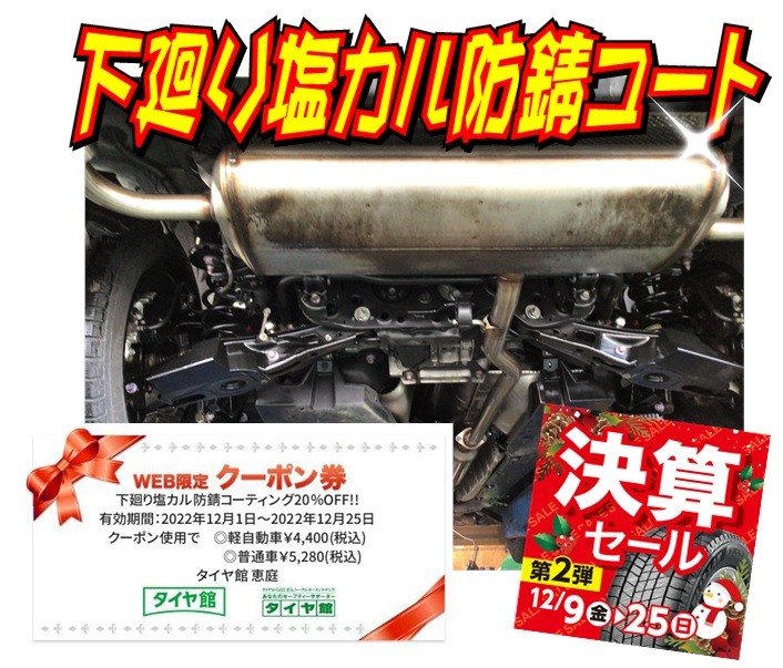 下廻り塩カル防錆コートクーポン配信中!!