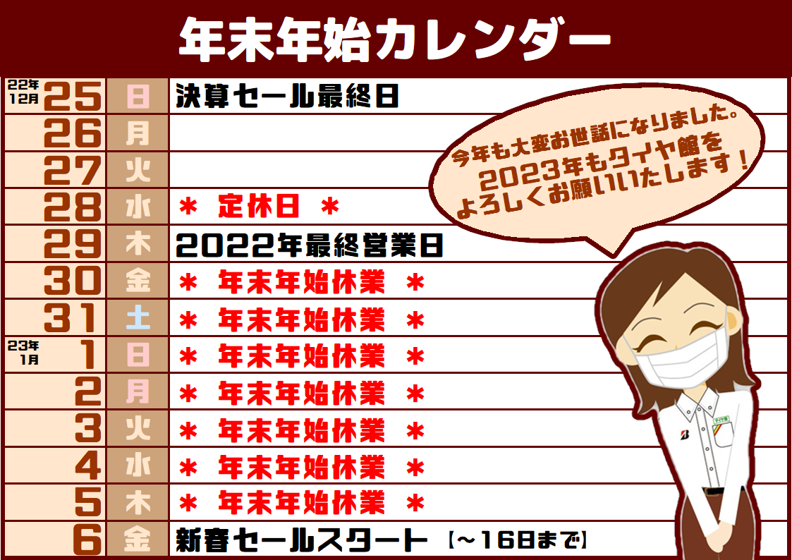 いつもタイヤ館をご利用いただきありがとうございます。