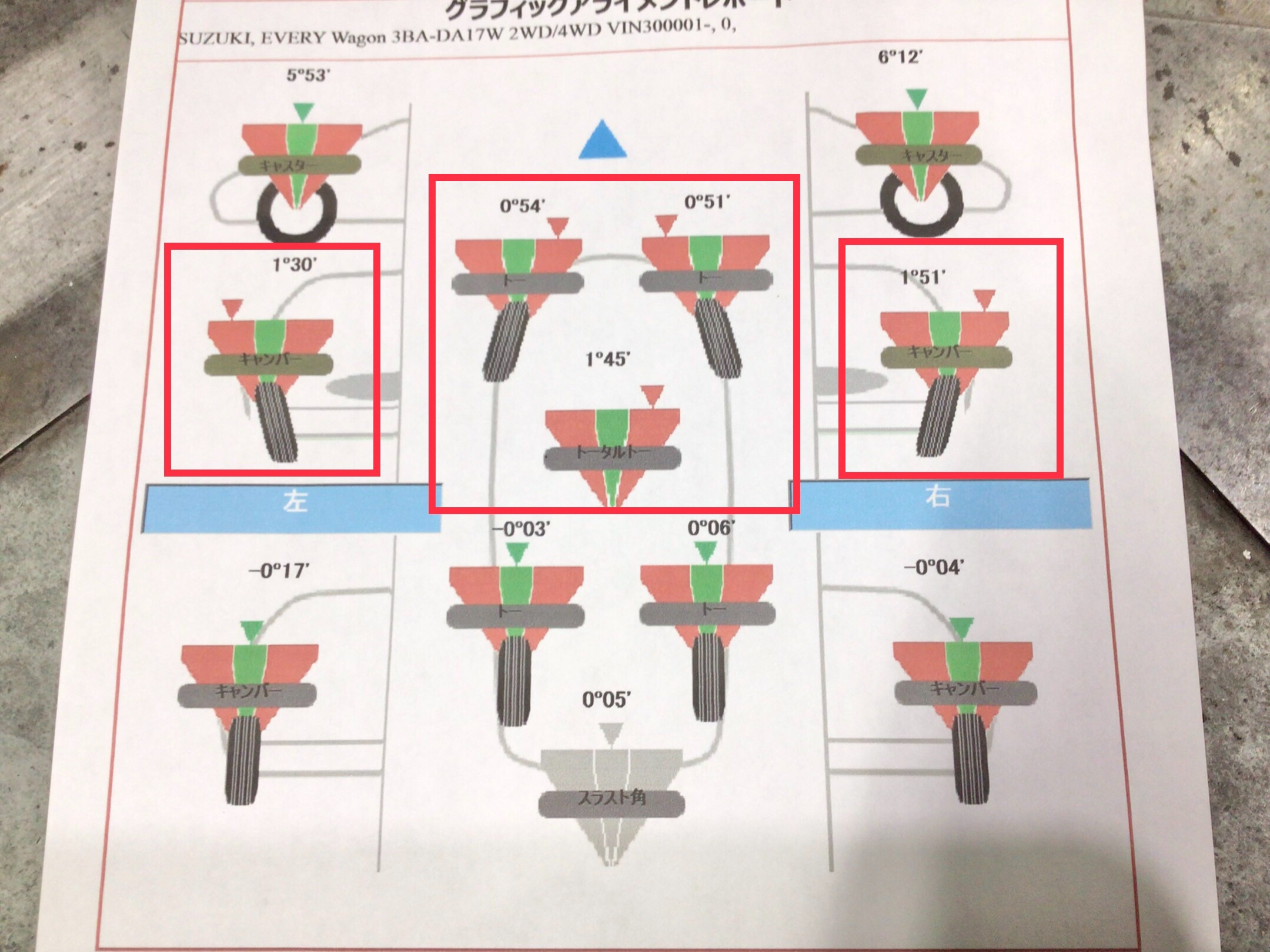 入庫前からフロントキャンバー角が異常にポジティブでしたが