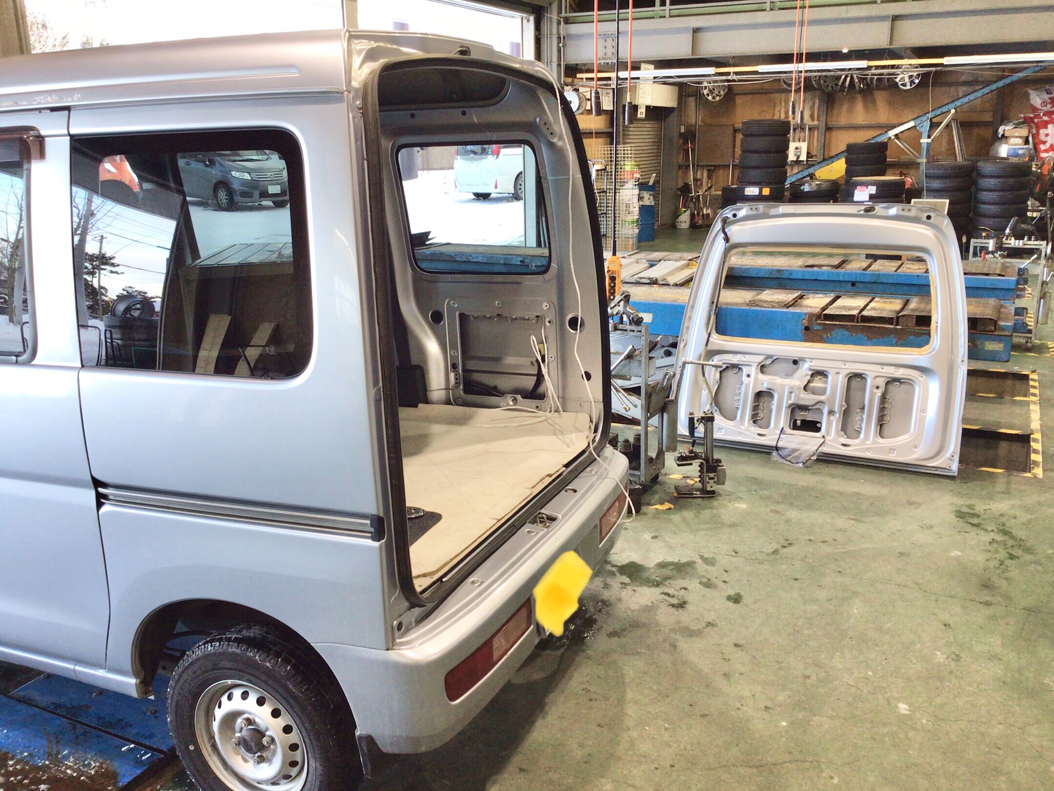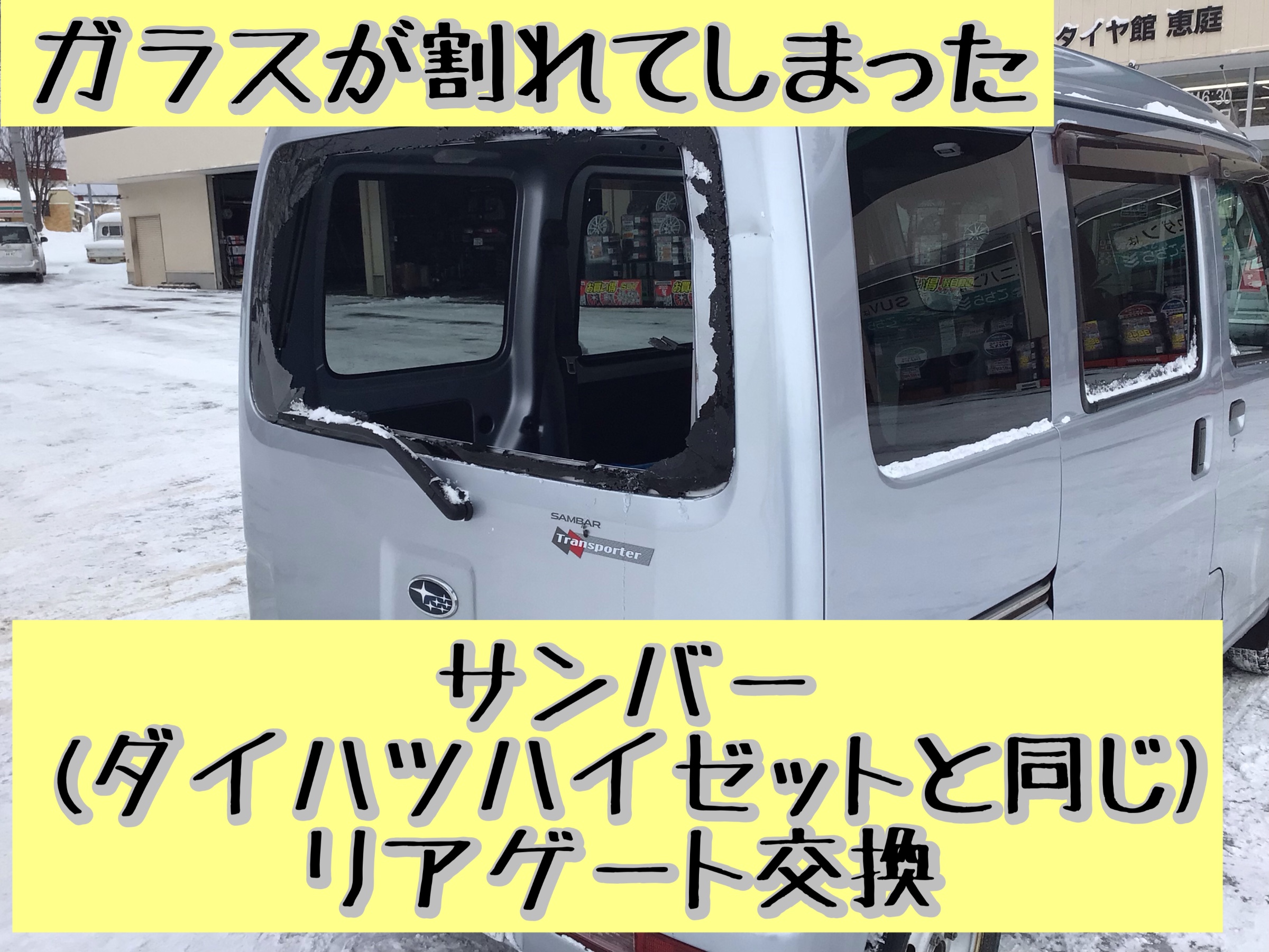 リアゲート交換 サンバー ハイゼット ガラス割れた