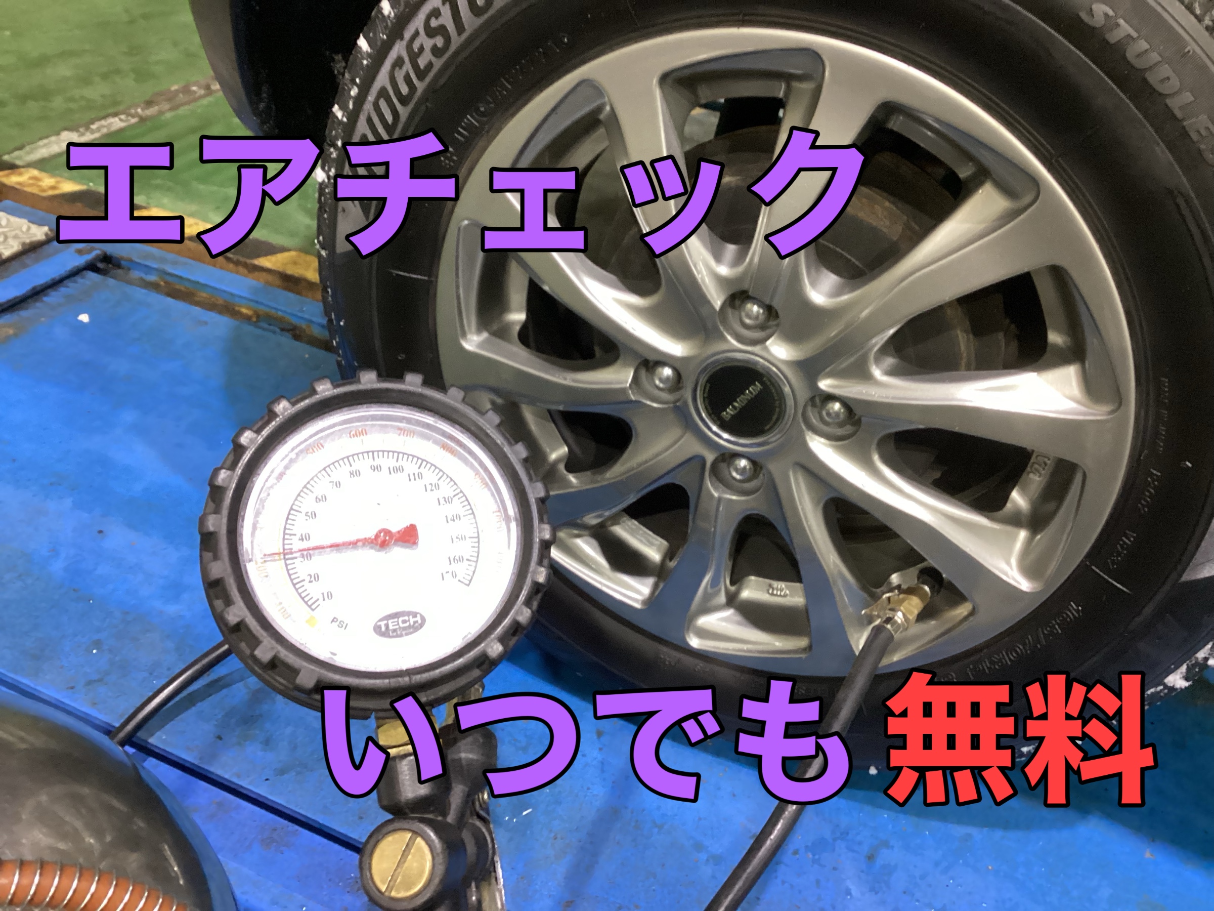 タイヤ館では、タイヤの空気圧点検をいつでも実施しております!