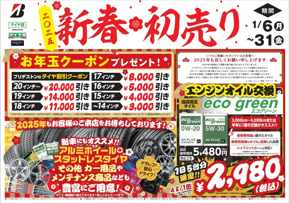 タイヤがお得!!新春初売り!!1月31日まで☆