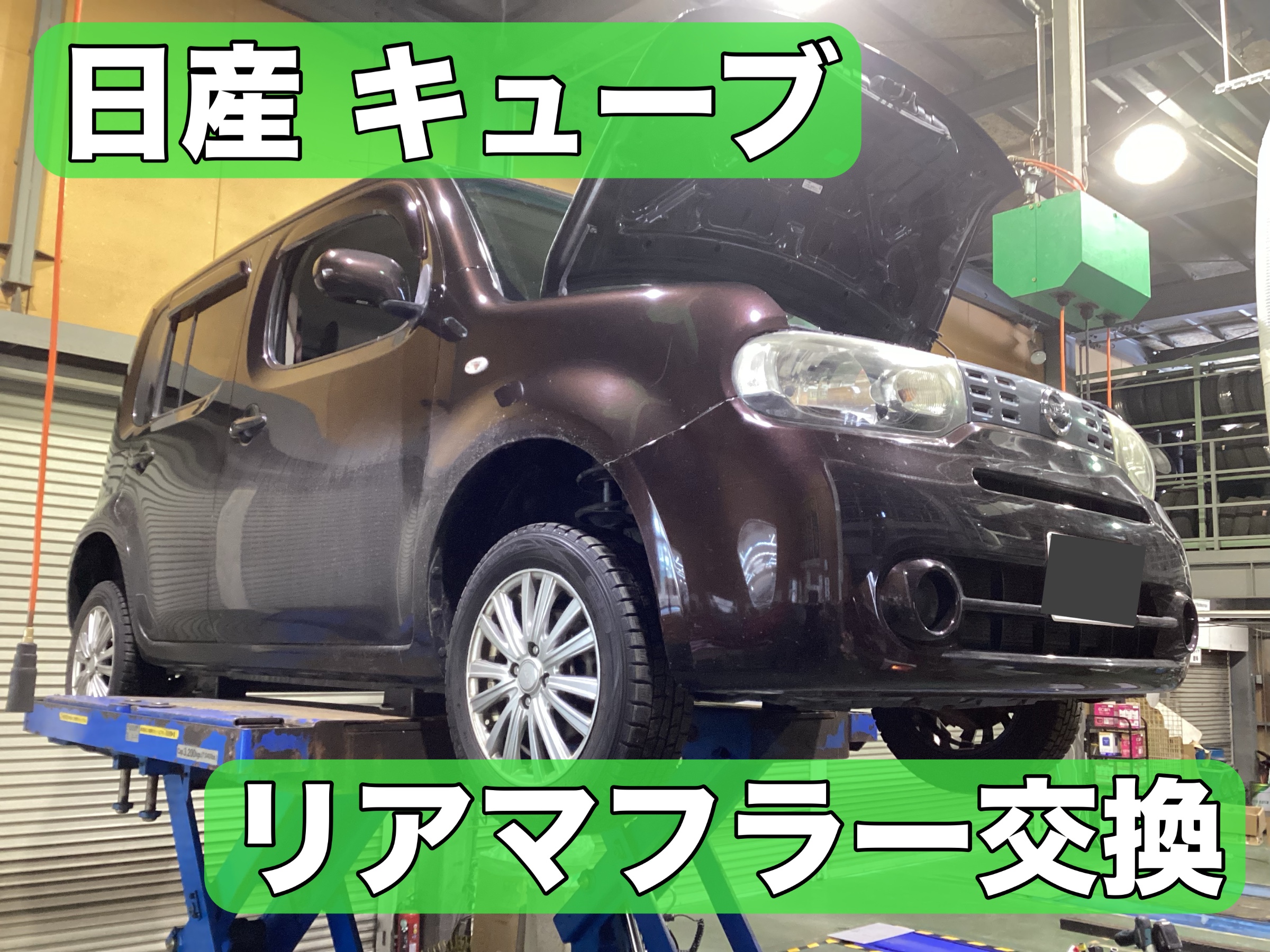 車検でご来店いただいたキューブのマフラー交換です。