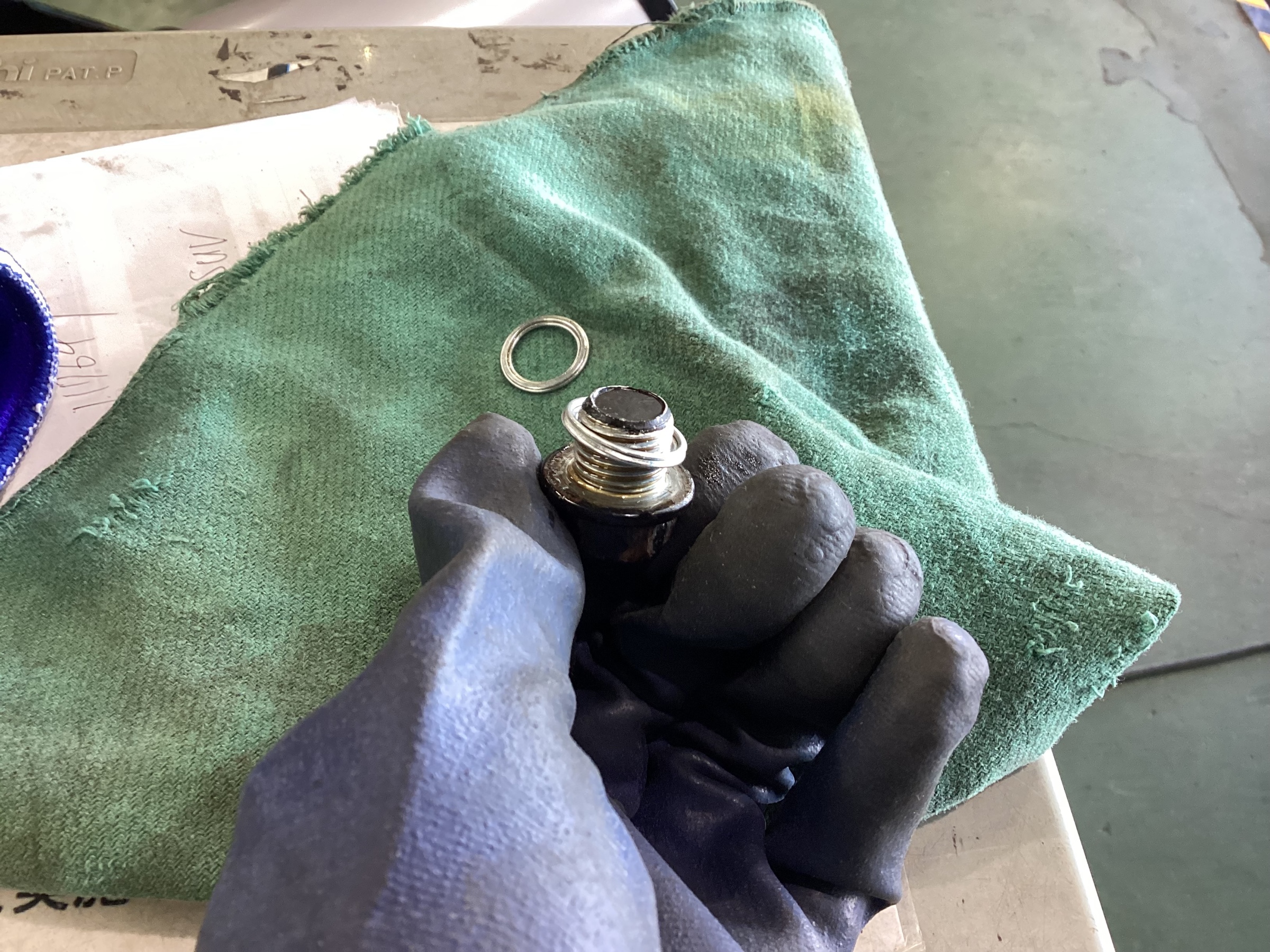 外したドレンボルトは清掃し、パッキンを新品に交換します。