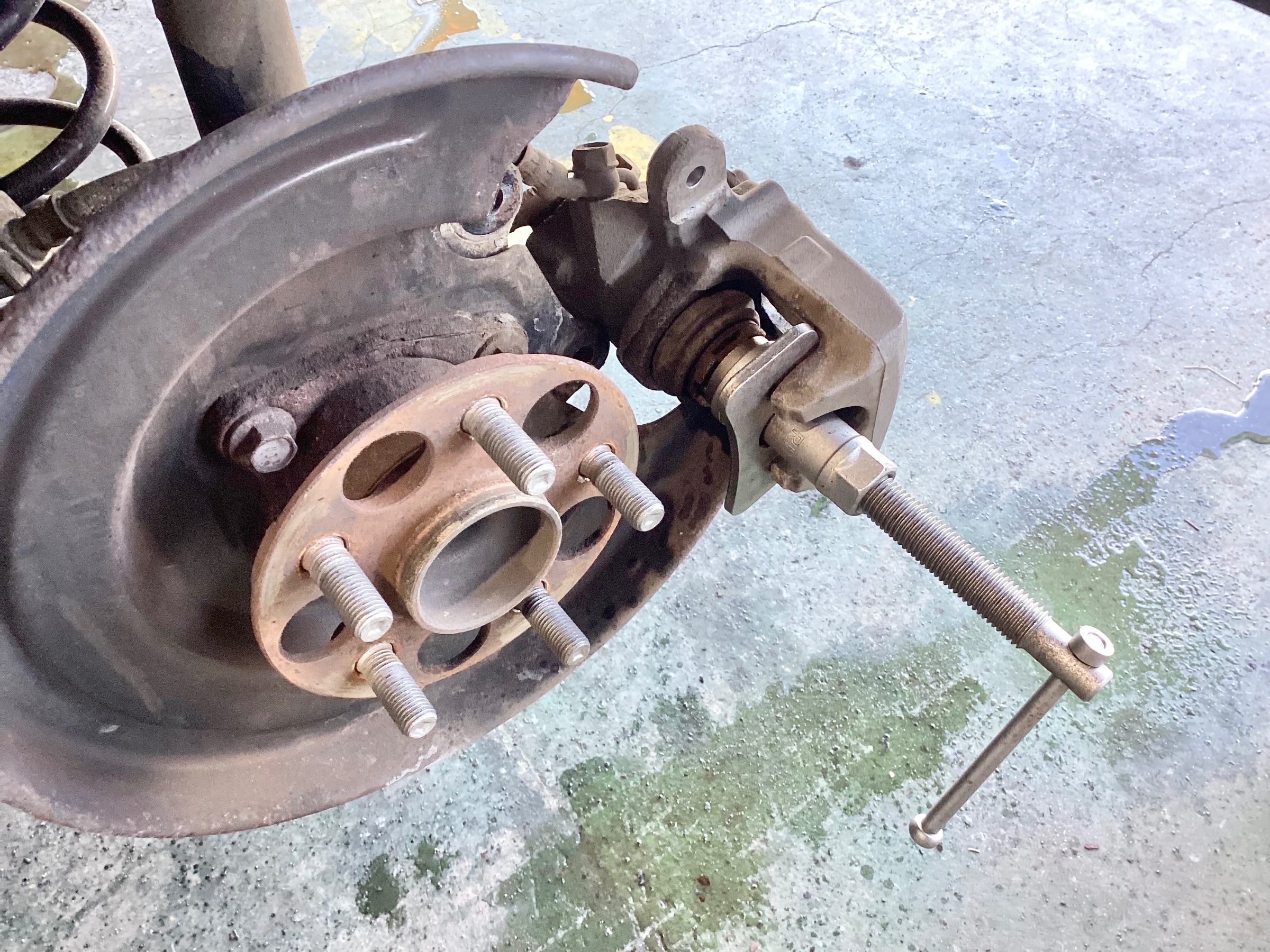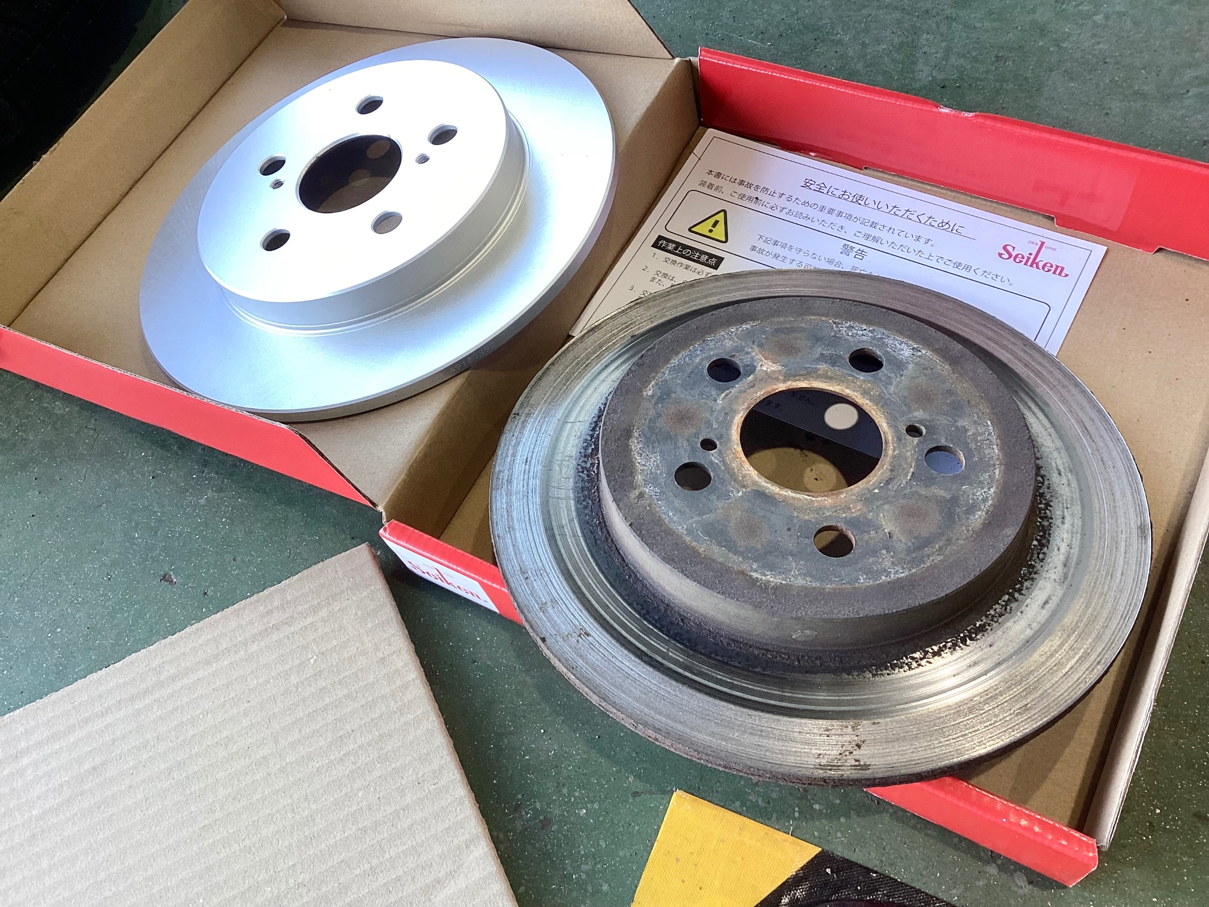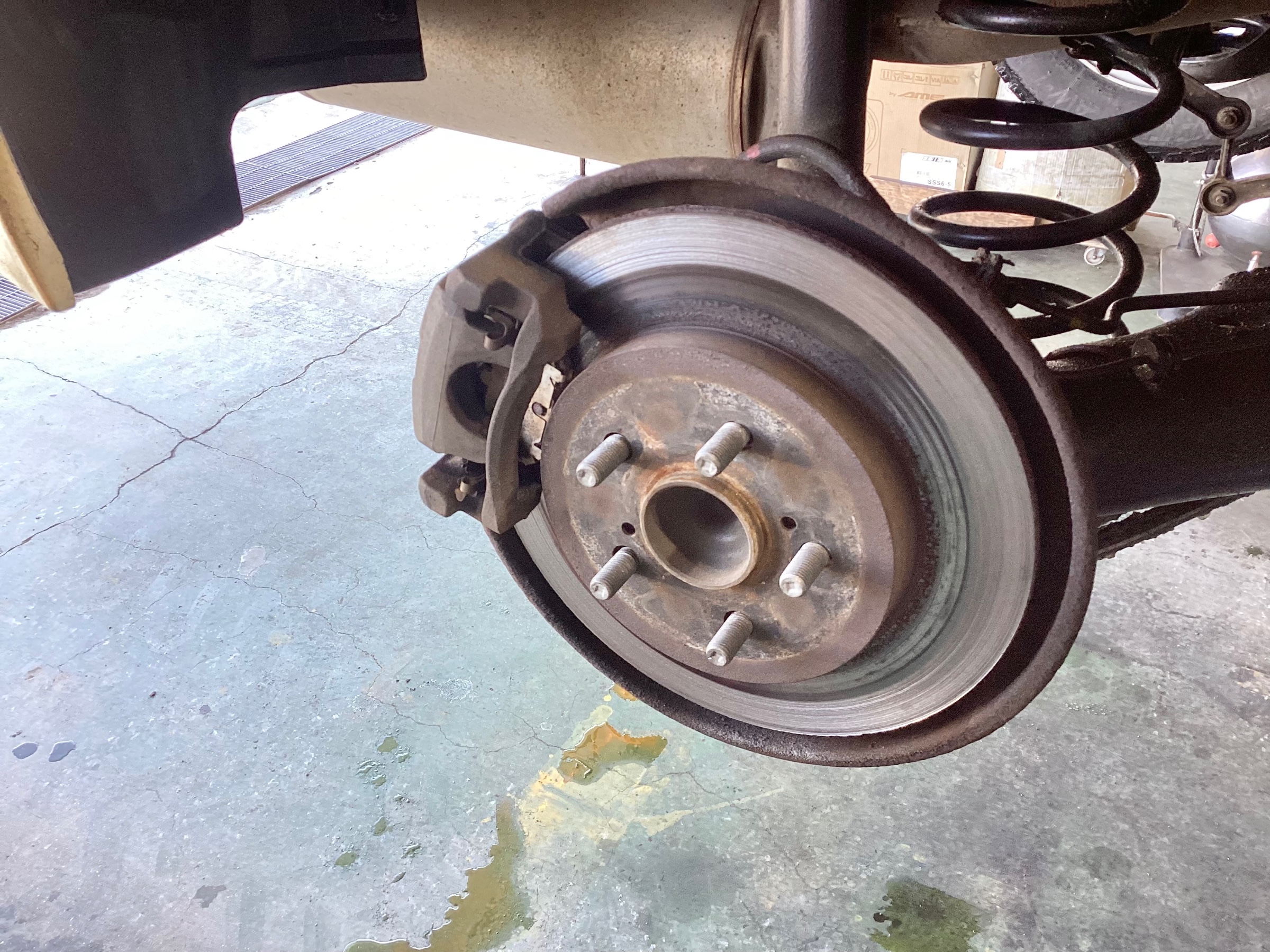 ピストンを回しながら押し込んで新品のパッドとローターに交換して終了です