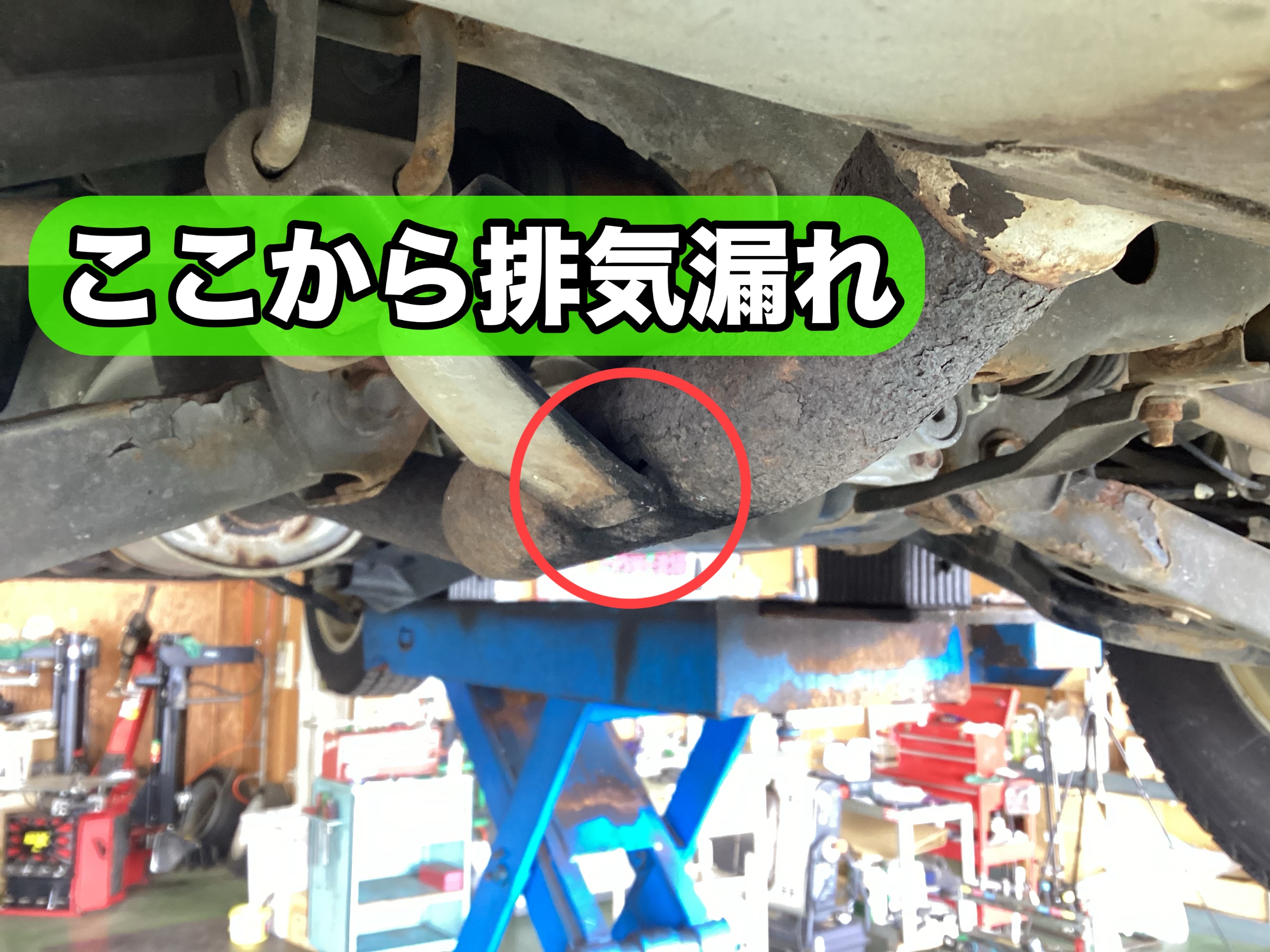 丸印のところから、ポコポコと排気漏れしてしまっています。