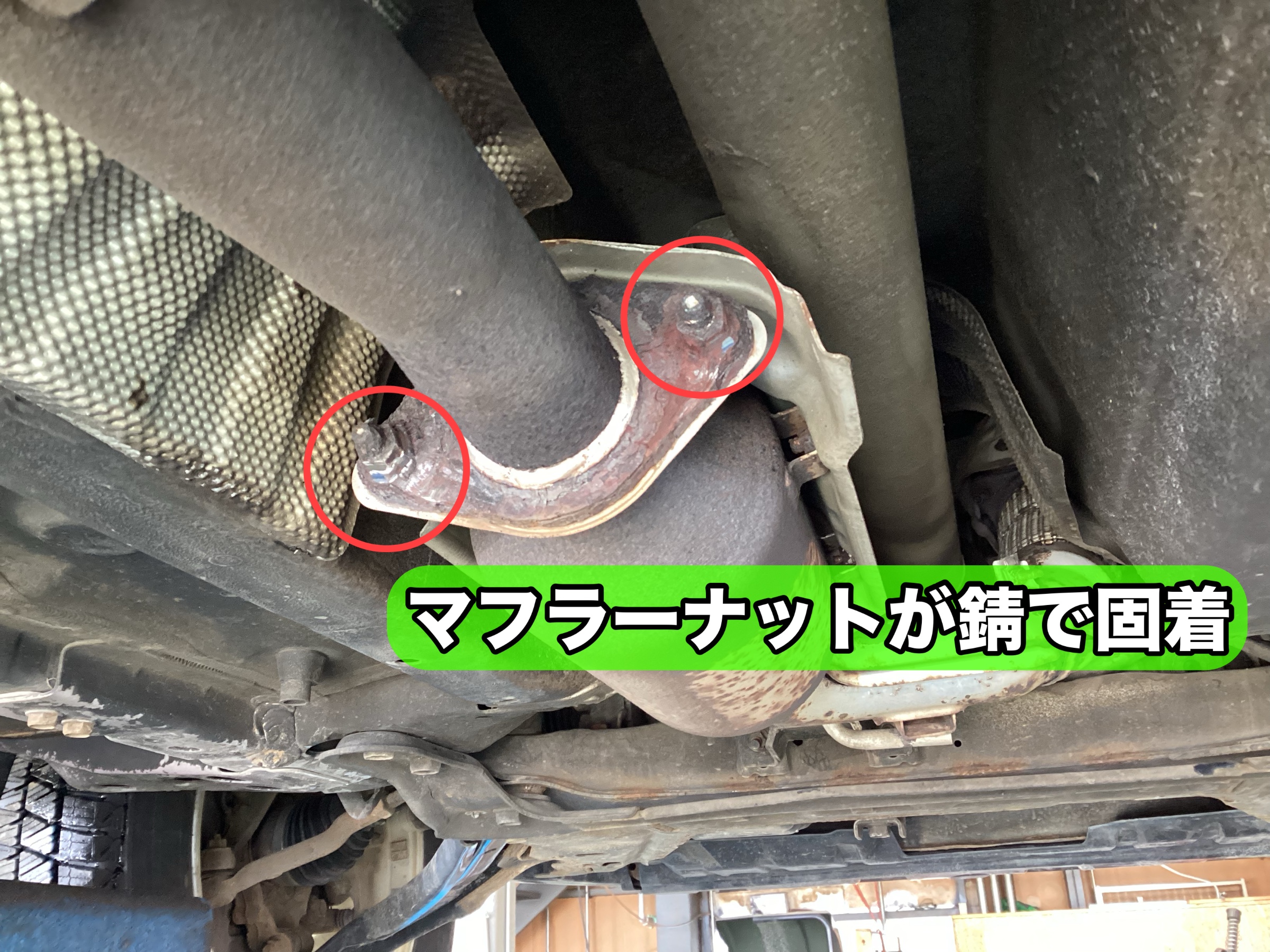 ナットが外れたら、後はお取り寄せした中古マフラーに差し替えて完了です。