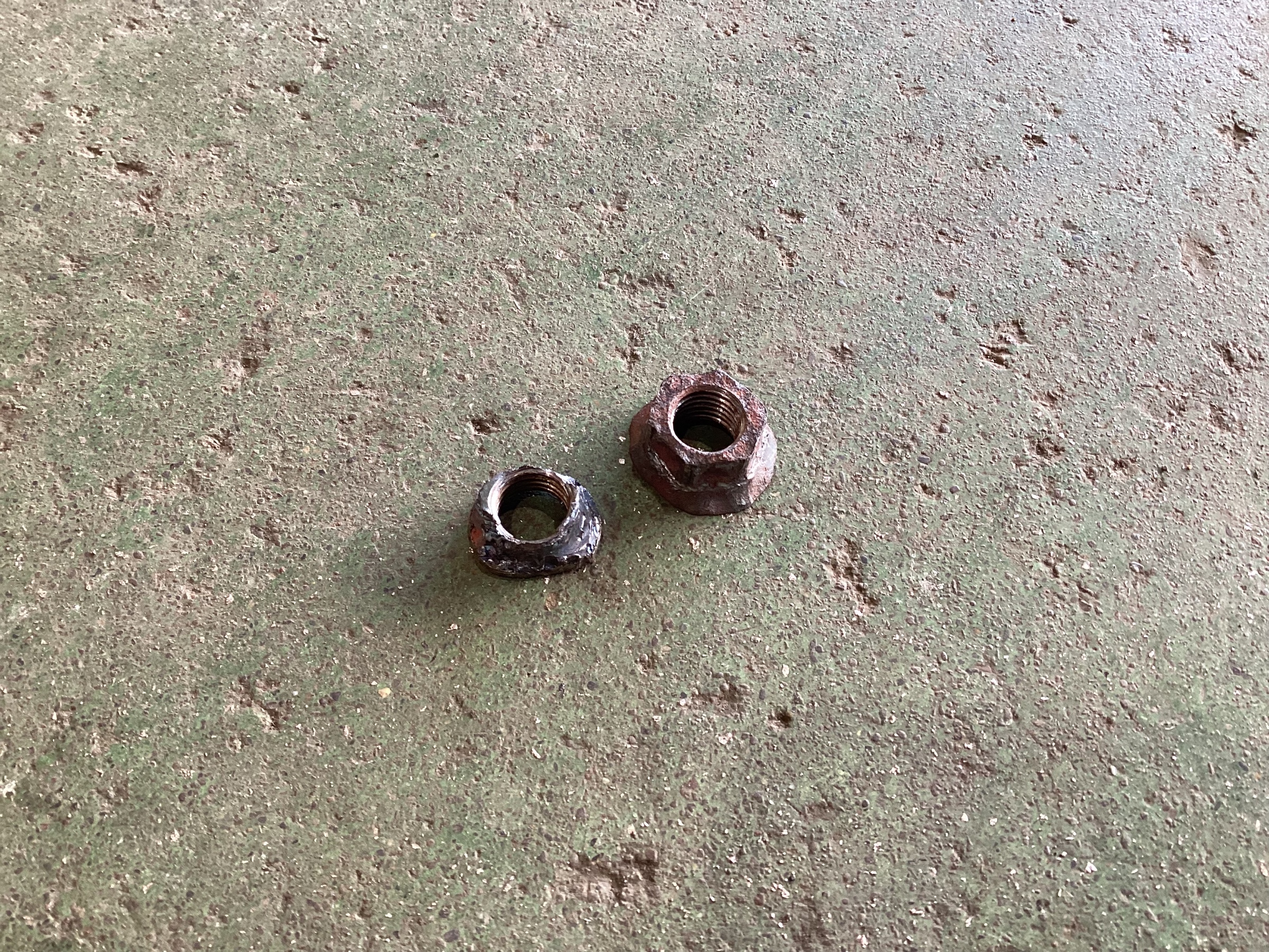 外すためにナットを確認すると、錆で完全にくっついてしまっています。削りながら外します。