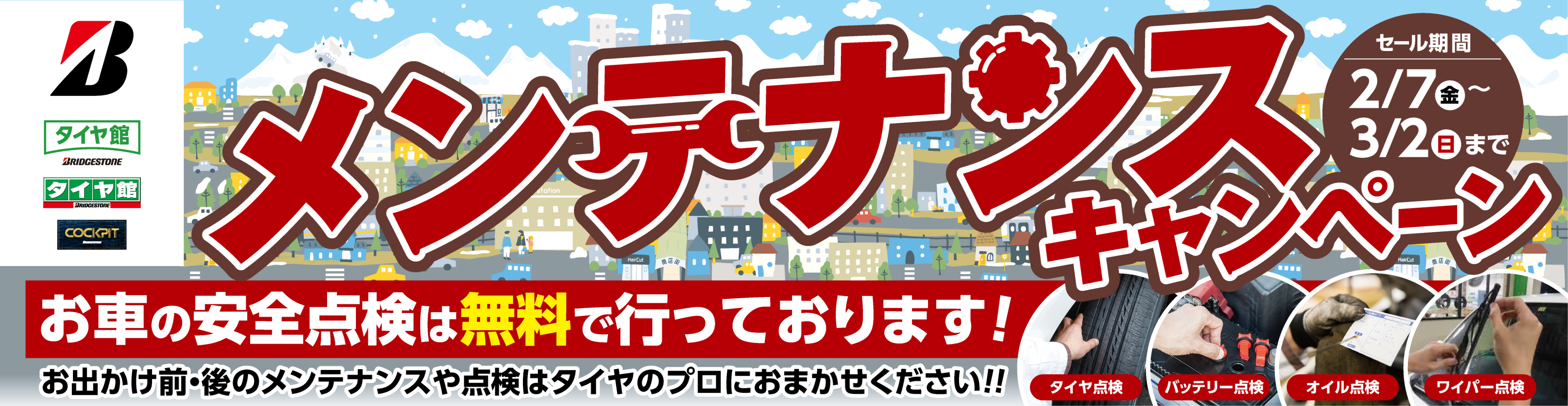 タイヤ館恵庭では、3月2日まで、メンテナンスキャンペーンを開催中!