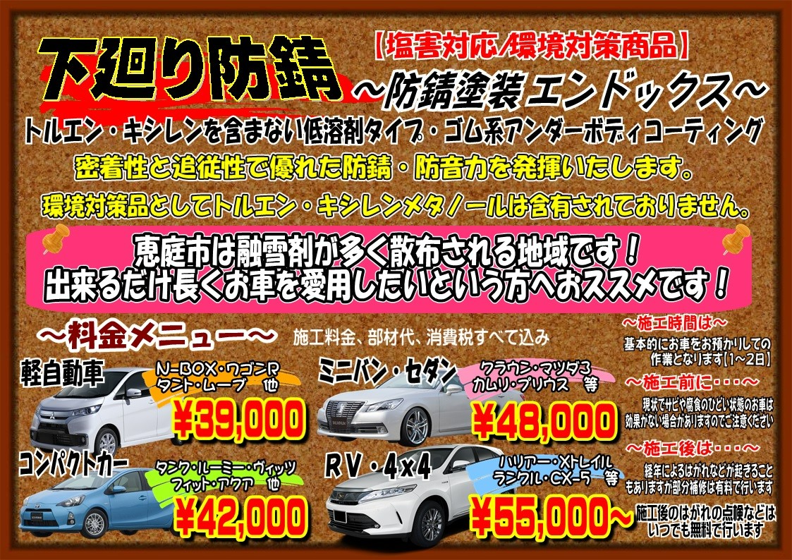 当店では下回り錆止めエンドックス防錆やっております!