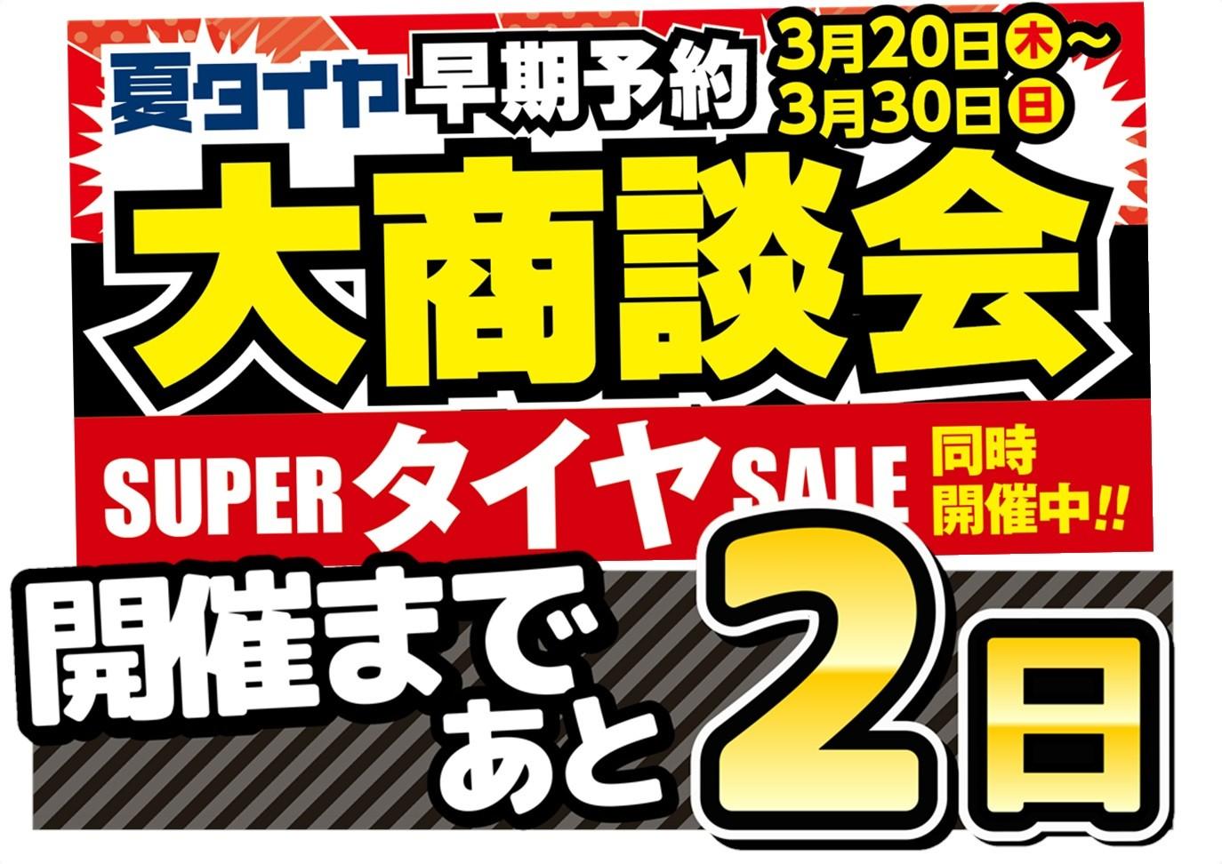 夏タイヤ早期予約大商談会開催まであと2日!スタッドレスタイヤ在庫処分セール同時開催!
