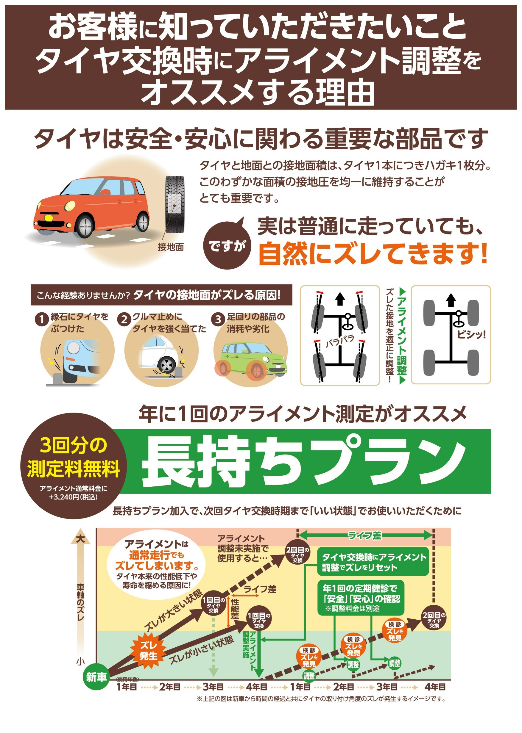 タイヤ購入時はお得なアライメントパックがおススメです!