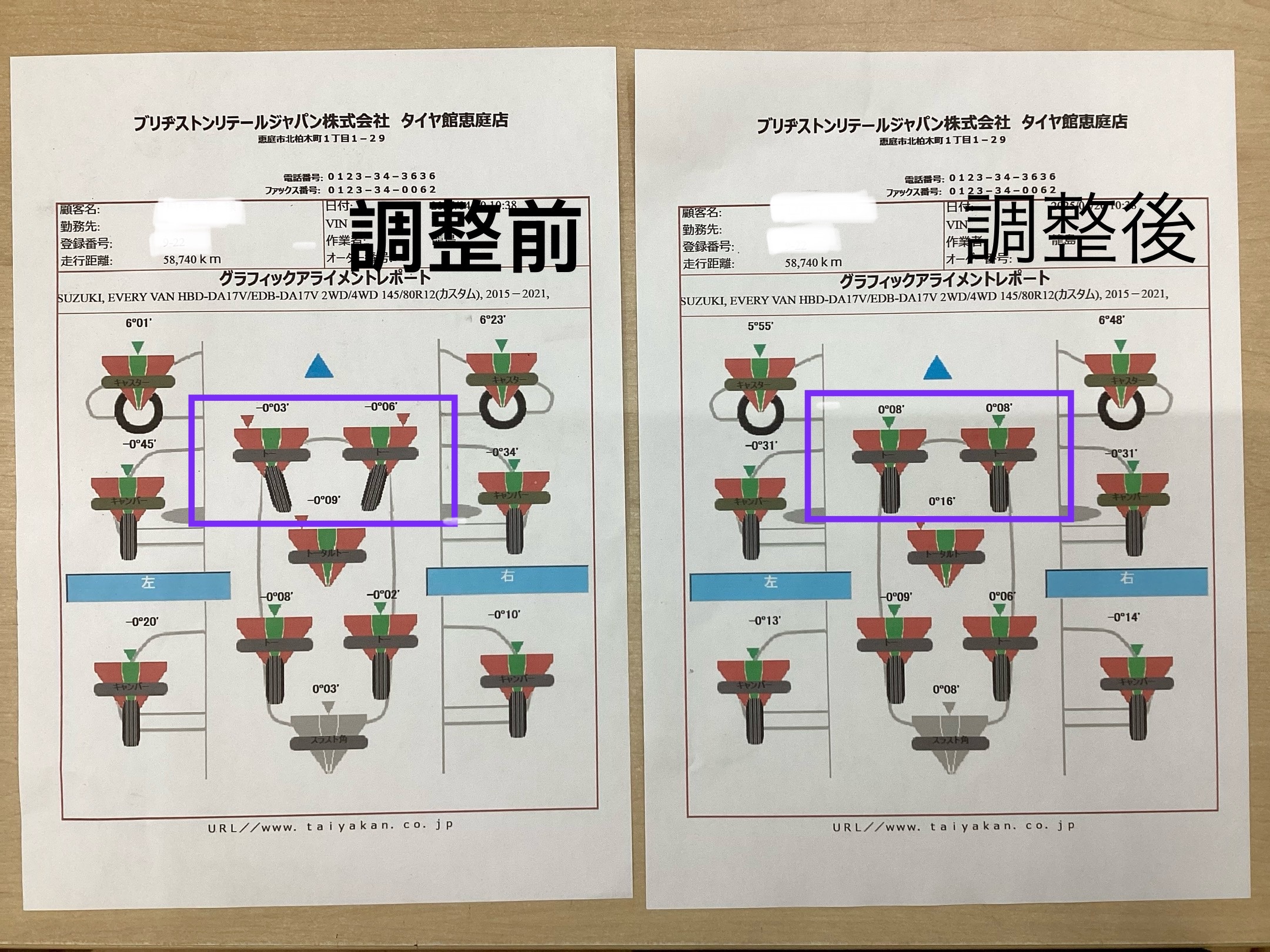 トー調整とキャンバーの左右差を合わせて終了です