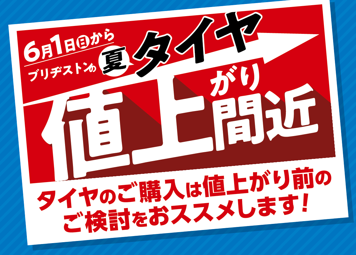 ブリヂストンの夏タイヤが6/1(日)~値上げとなります。