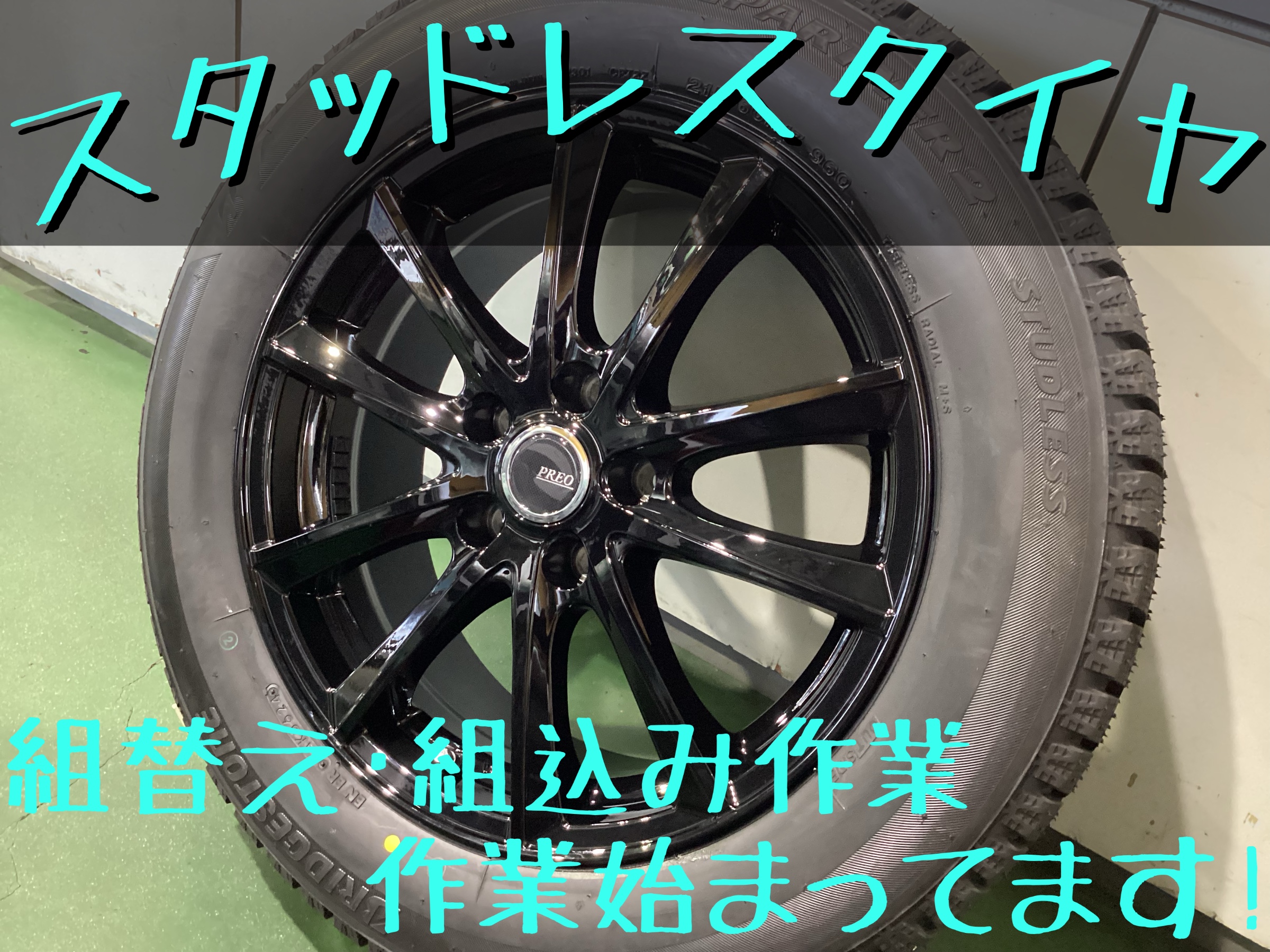 スタッドレスタイヤ組替え・組込み作業始まってます。