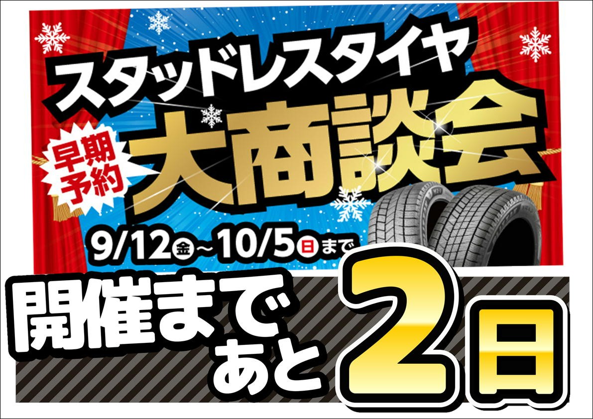 スタッドレスタイヤ早期予約大商談会まであと2日!