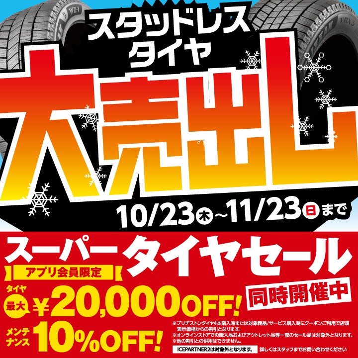 スタッドレスタイヤ大売出し!!スーパータイヤセール同時開催中!