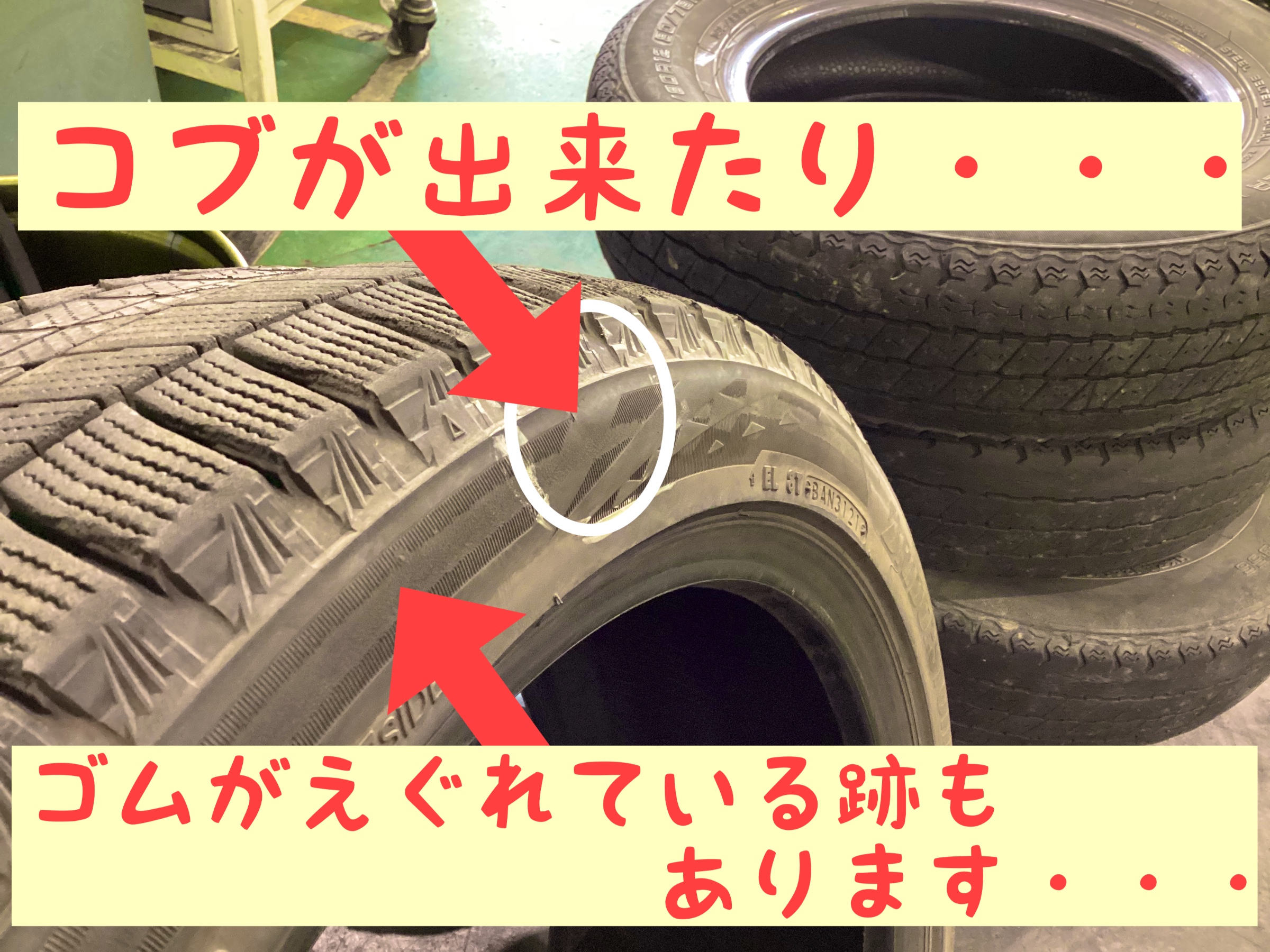 タイヤの横部分にコブが出来ており、